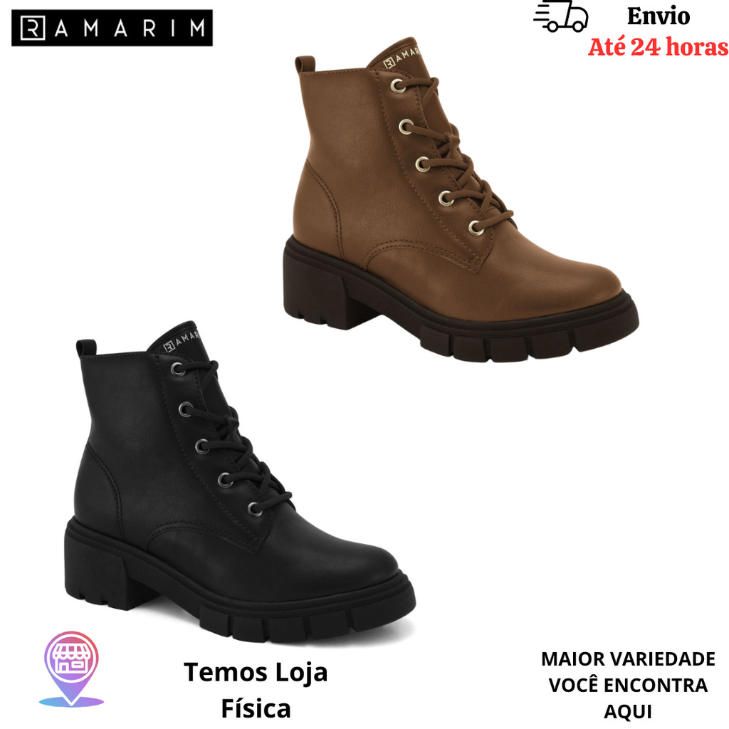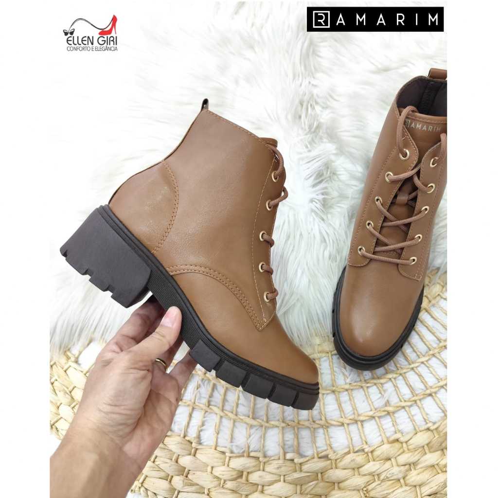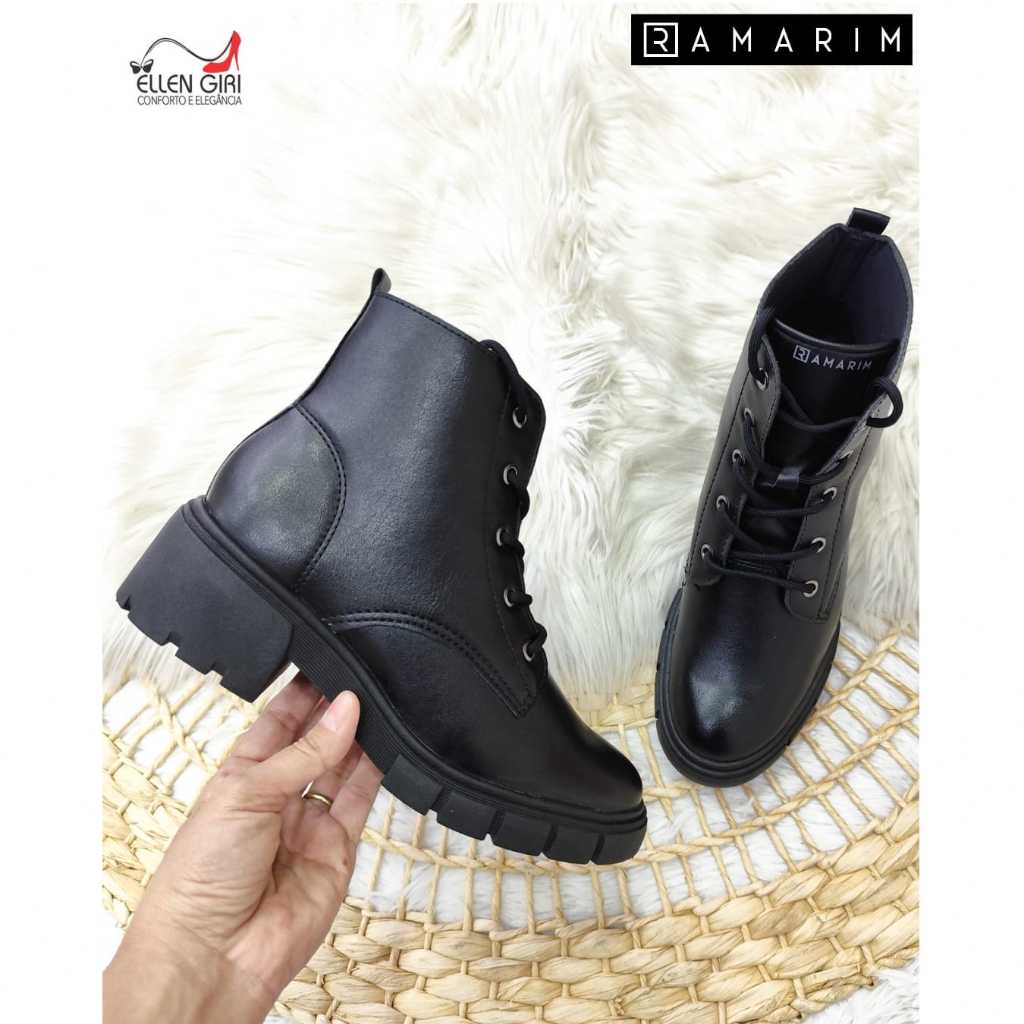 Bota Feminina RAMARIM Com Cadarço Sola Tratorada 4,5 cm