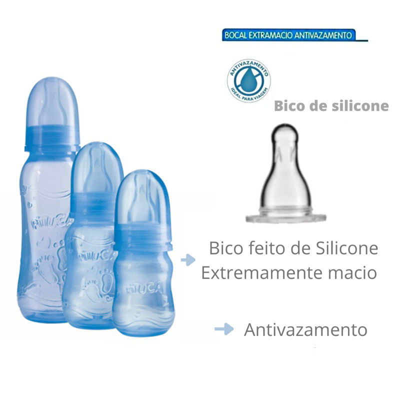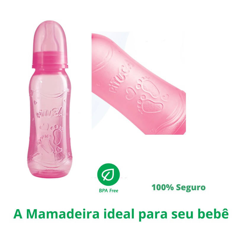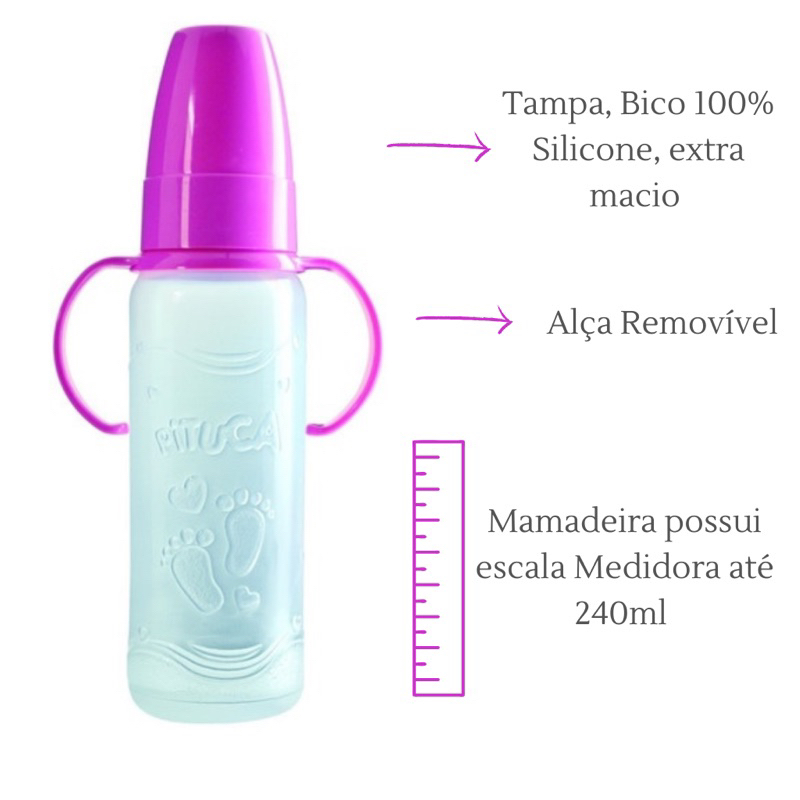 kit Mamadeira Para Bebê Pituca 80ml + 150ml + 240ml Mamadeira com Alça