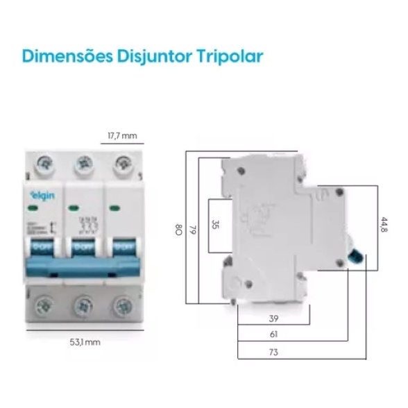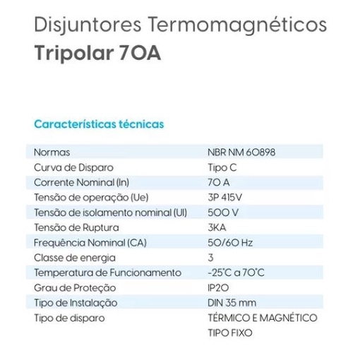 Disjuntor Tripolar 3 Polos Trifásico Elgin 70a Amperes