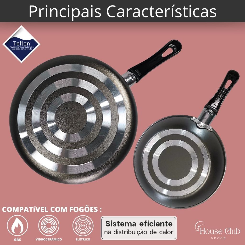 Kit Frigideira Alta 22 cm com Tampa de Vidro e Frigideira Francesa 16 cm Antiaderente Teflon Grafite