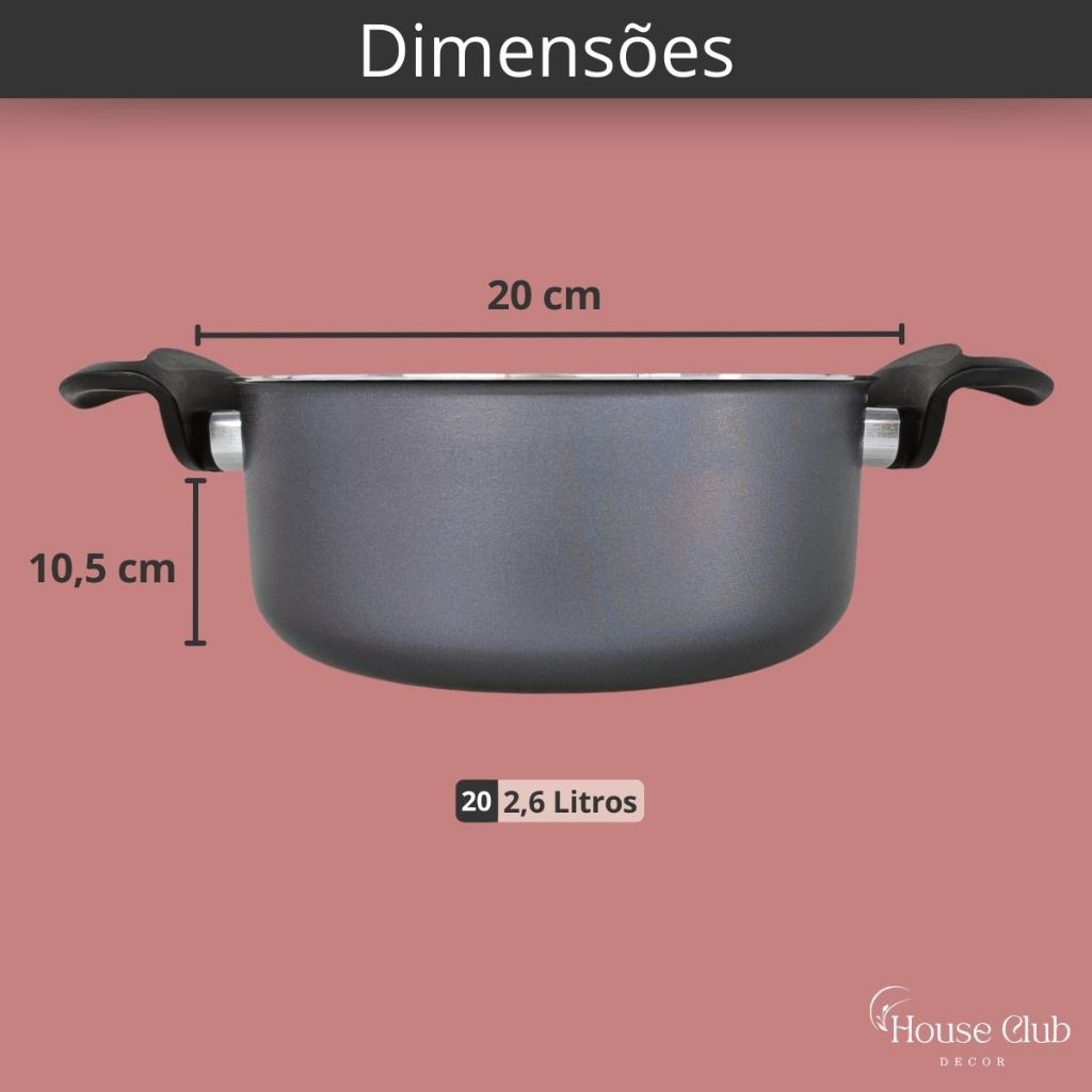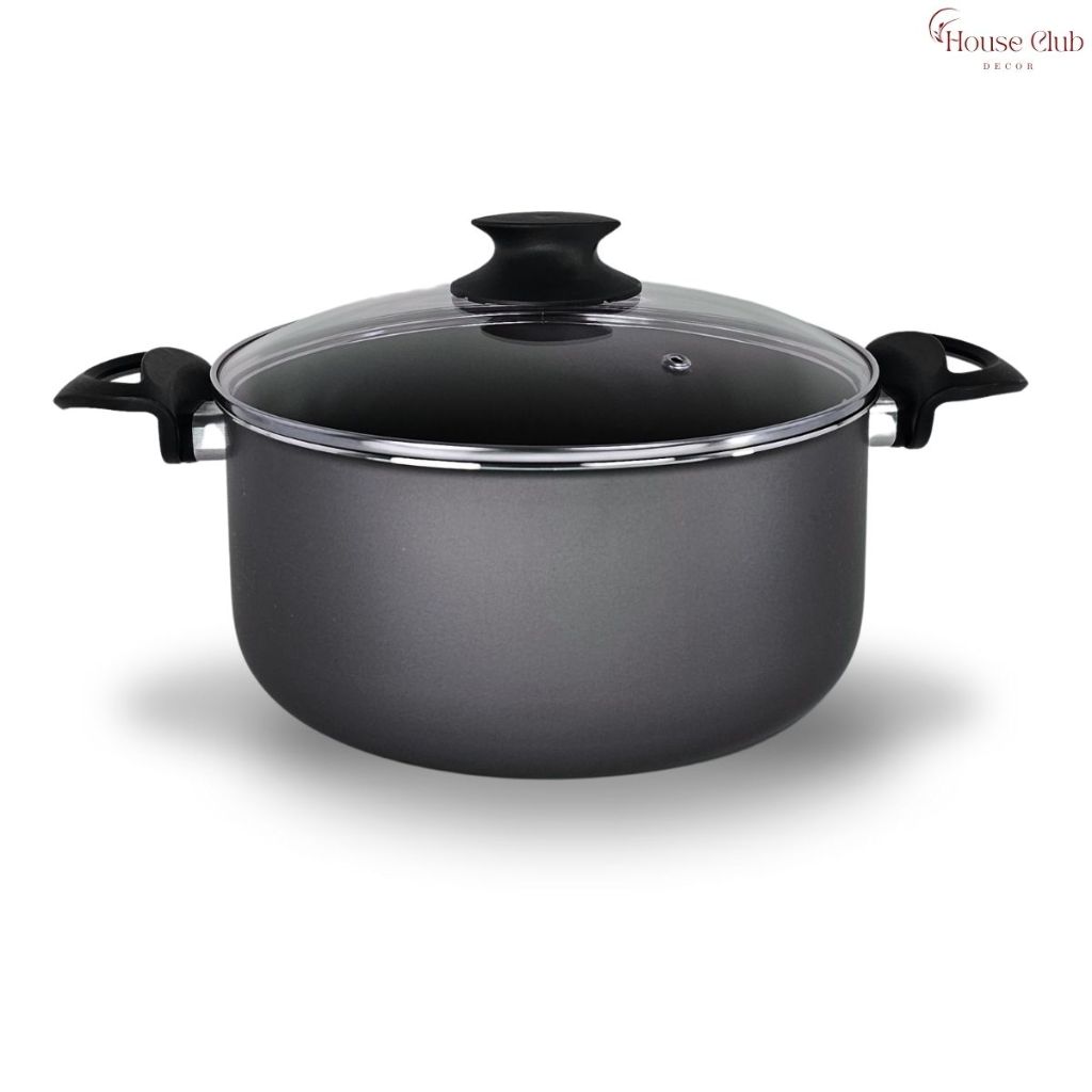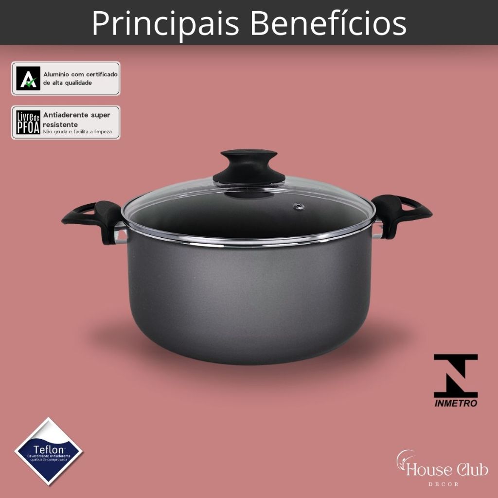 Panela Caçarola Plus 20 cm com Tampa de Vidro Antiaderente 5 Camadas de Teflon Cor Grafite Preto