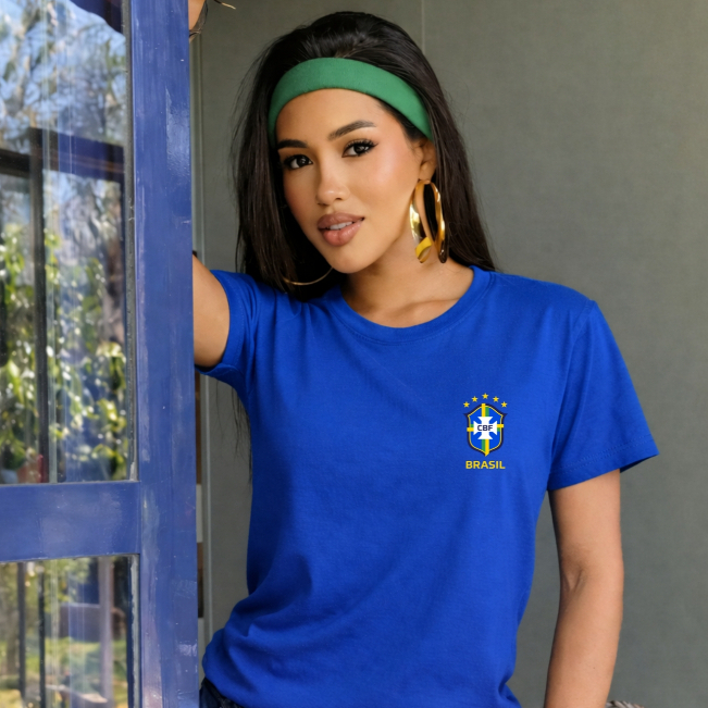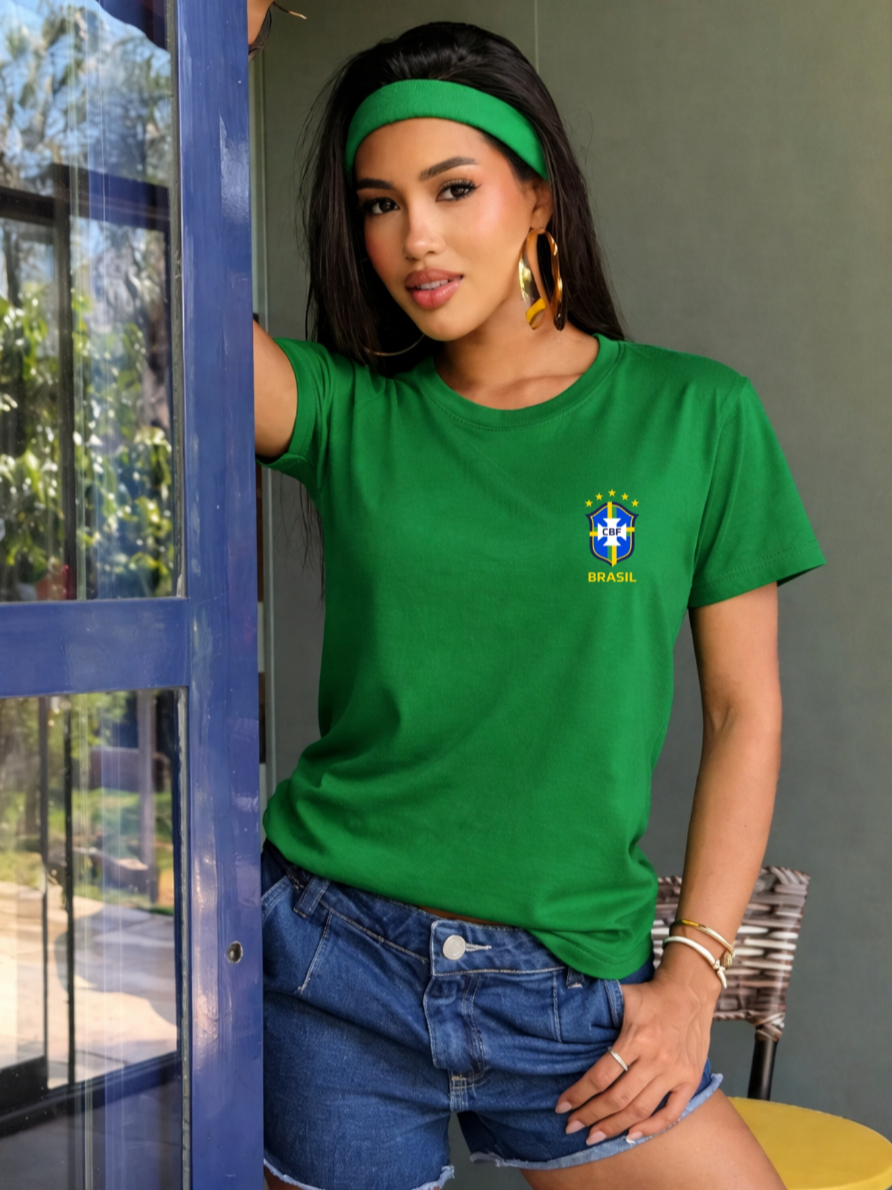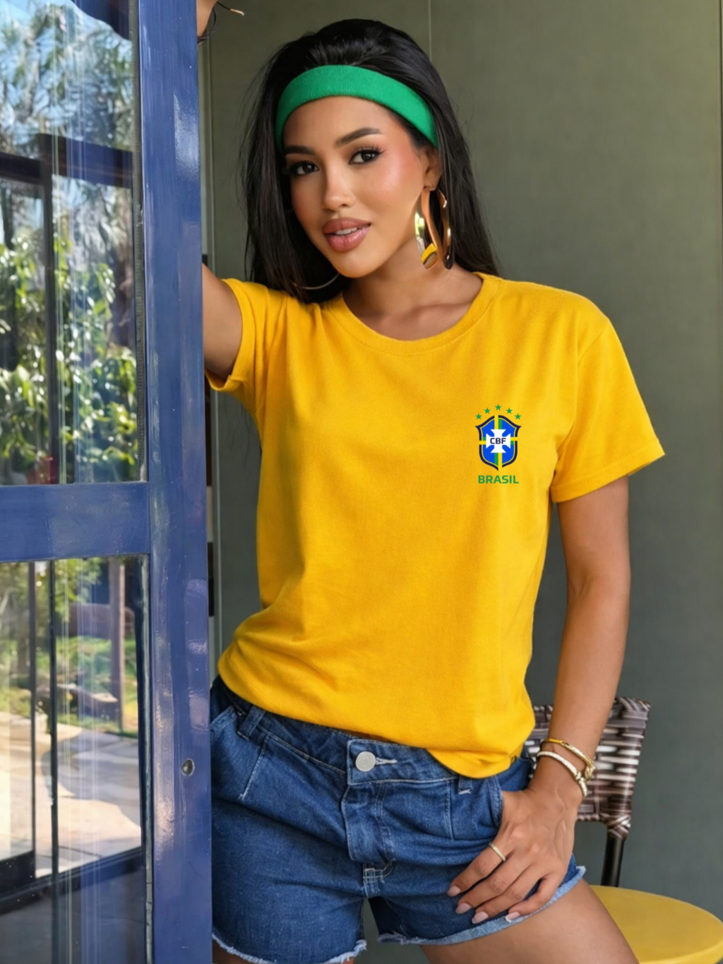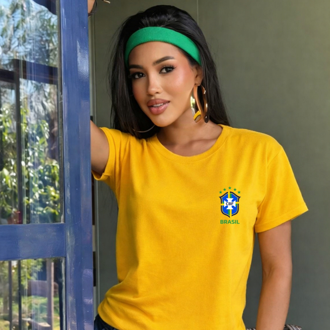 T-Shirt Feminina Estampada Brasil Blusa Copa 100% Algodão Envio Imediato