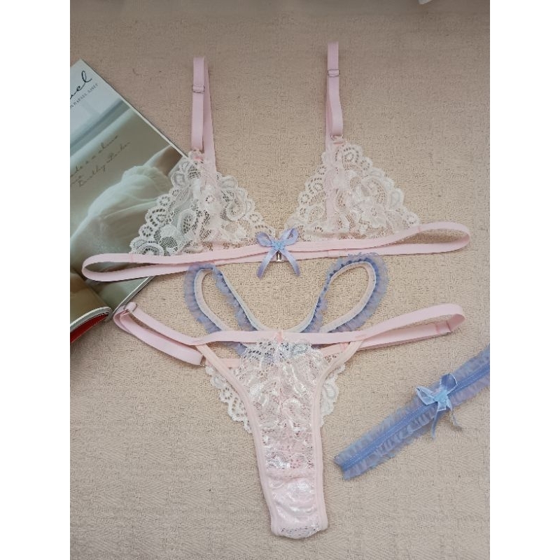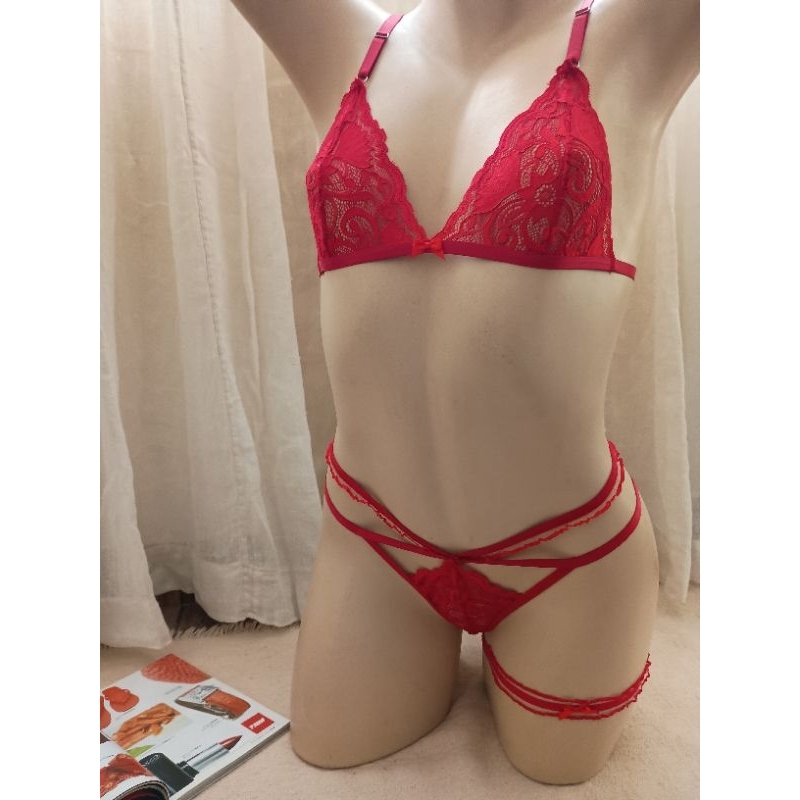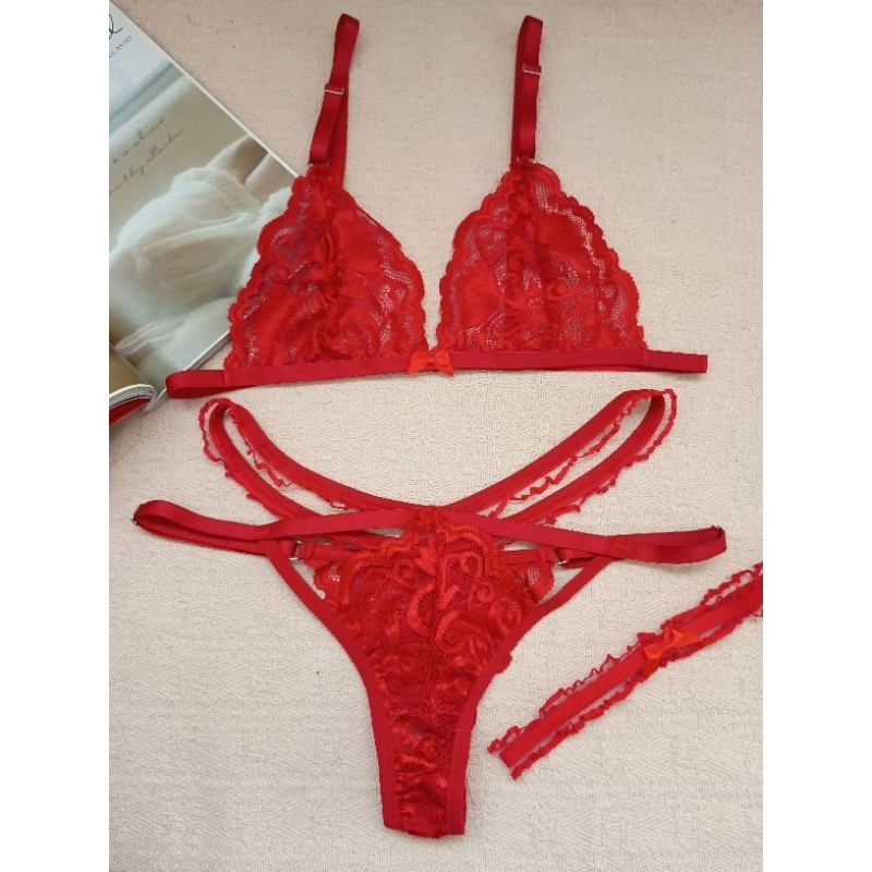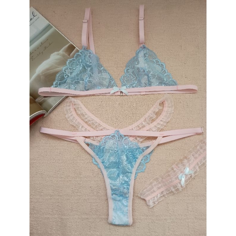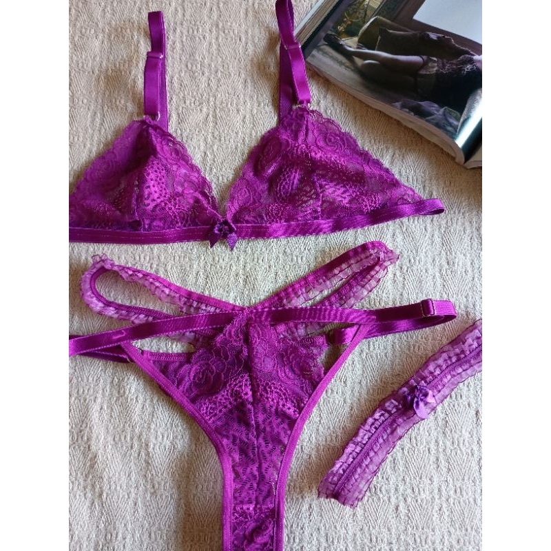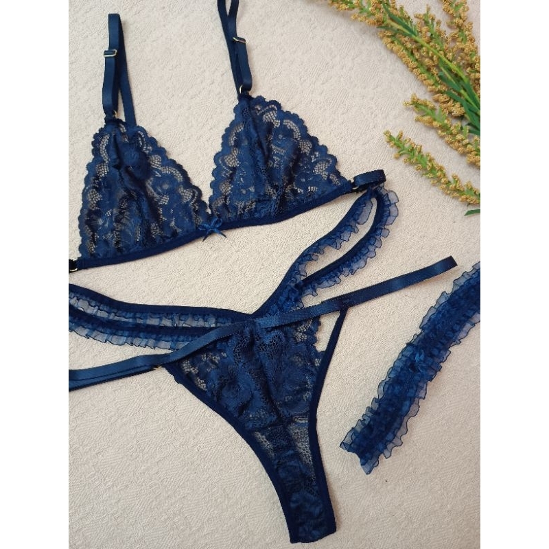 Conjunto lingerie renda bralette com liga