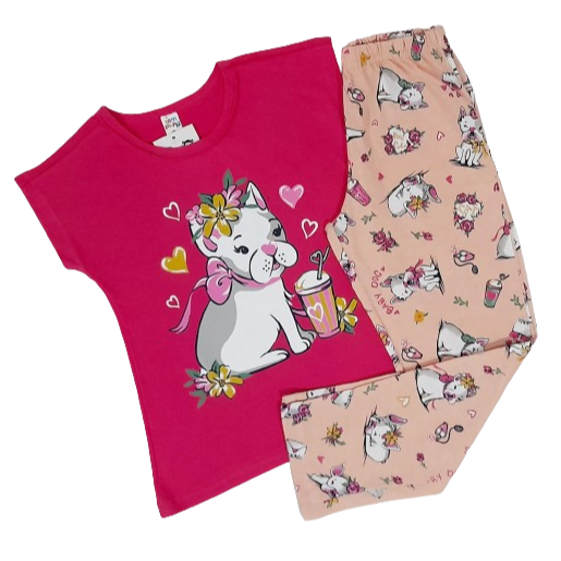 Pijama Infantil Menina - Meia Manga - 100% Algodão - Tamanho 4 ao 12 - REF: 680A/680B