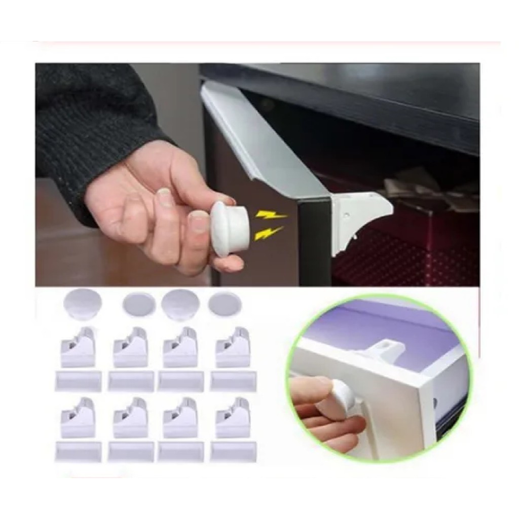 Conjunto 4 Travas Magnética Gaveta Armário Segurança Crianças