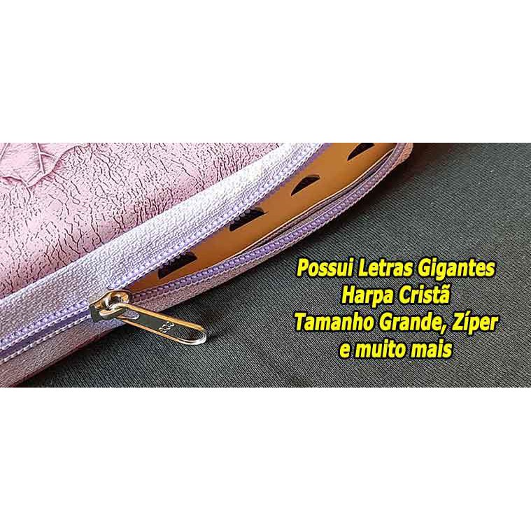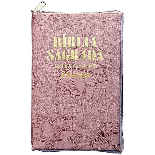 Bíblias Sagrada Letra Gigante C/ Harpa - Zíper - Palavras de Jesus em Vermelho - Rosa Claro folhas