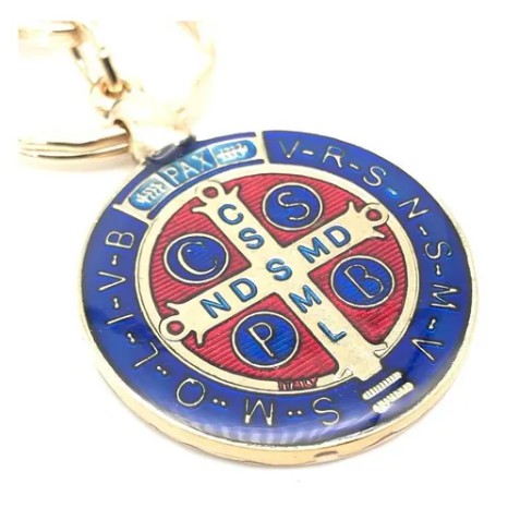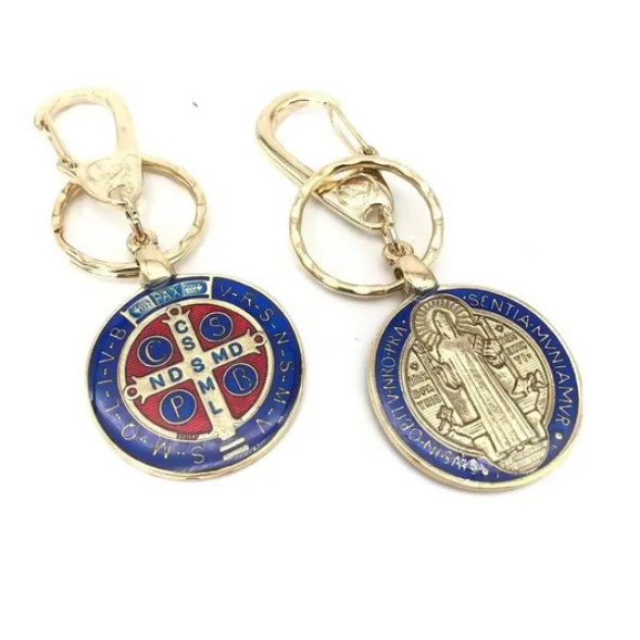 Chaveiro De Metal Medalha São Bento Com Mosquetão Dourado ou Prateado.