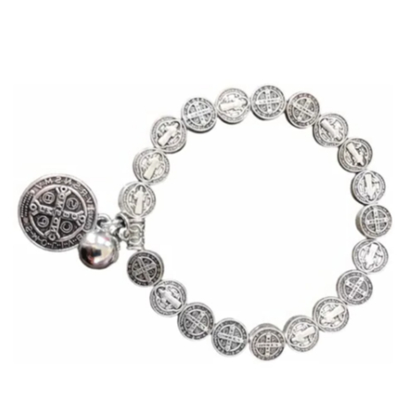 kit Revenda 03 Pulseiras Medallhas Prateadas de São Bento /Artigo Religioso/Artigo Católico