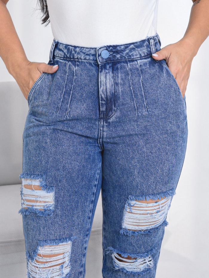 CALÇA MOM JEANS CINTURA ALTA FEMININA 100% BLOGUEIRA SEM ELASTANO LYCRA