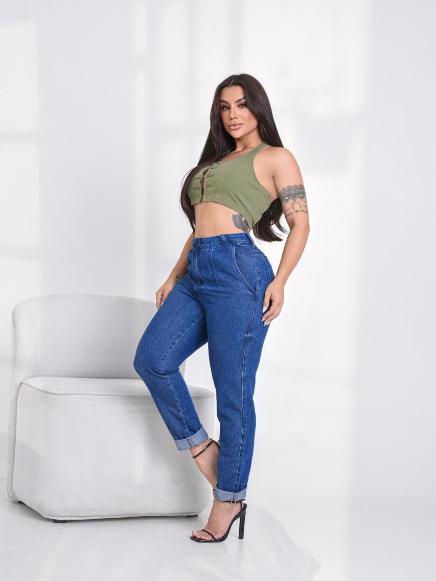 Calça Feminina Jeans MOM Premium Cintura Alta 100% Algodão LISA