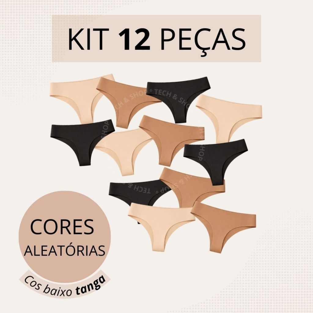 Kit Calcinhas Sem Costura Tanga Macio e Respirável Poliamida Premium