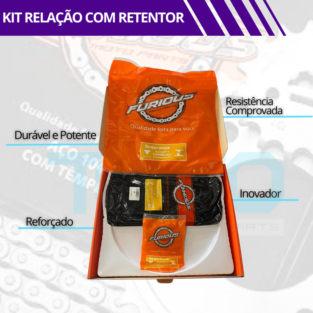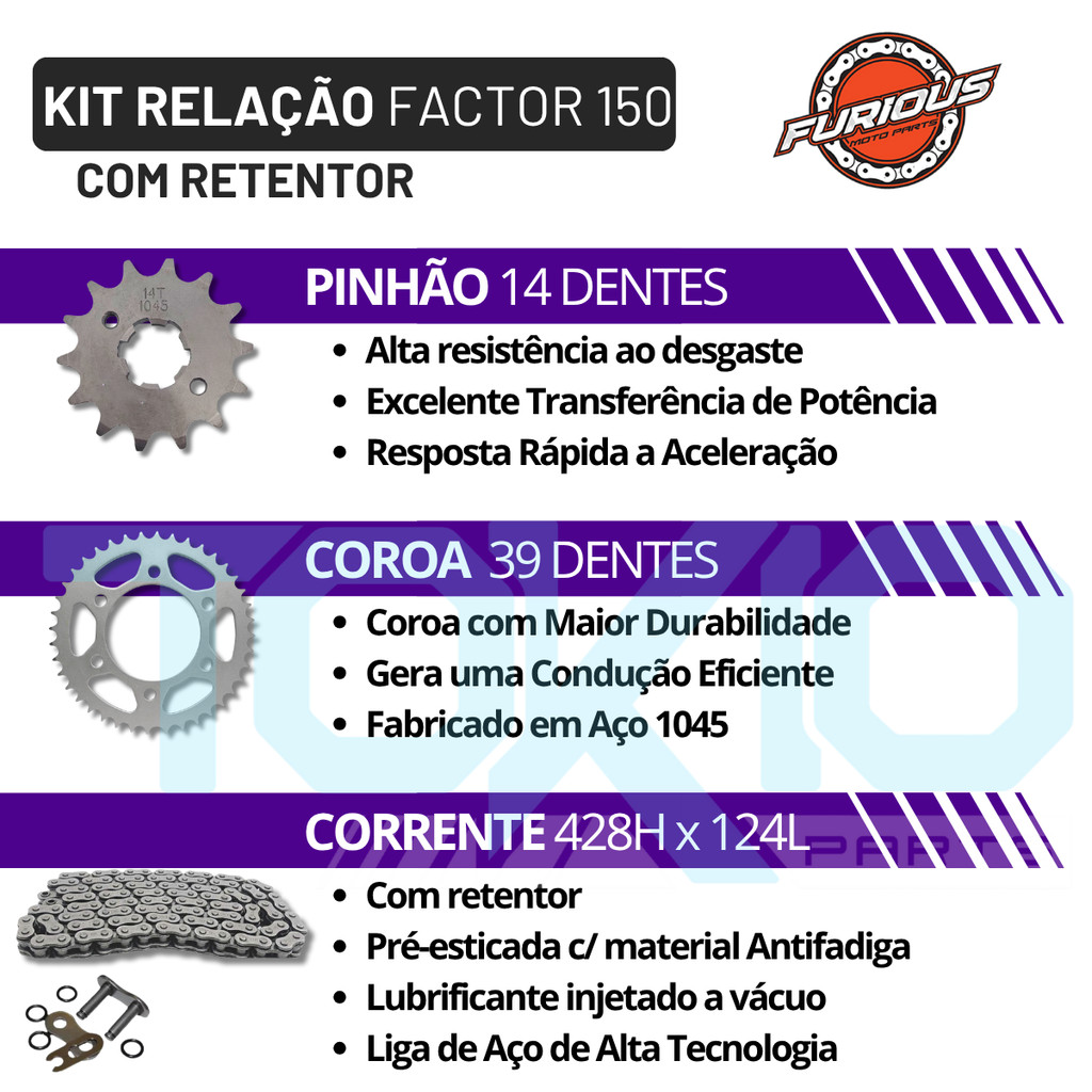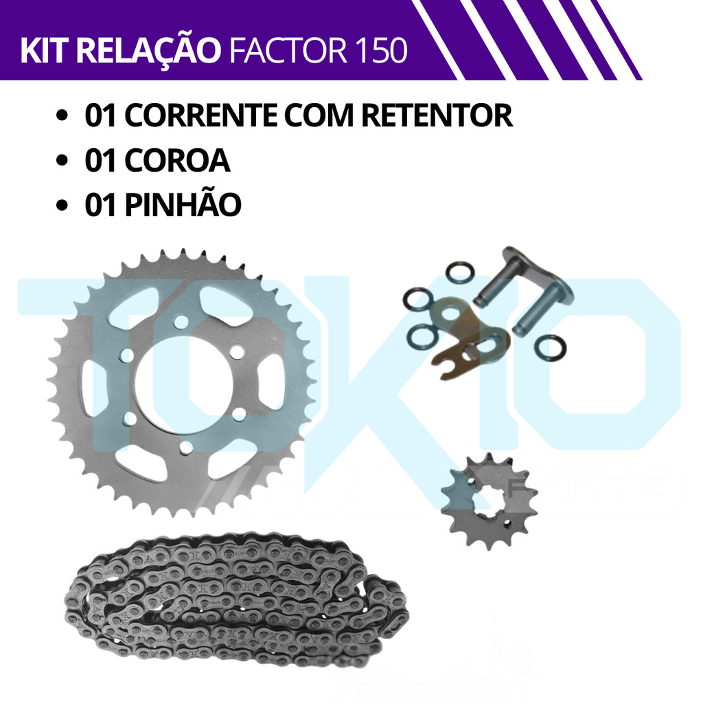 KIT RELAÇÃO COM RETENTOR YBR FACTOR 150 i 2016 A 2023 TRANSMISSÃO