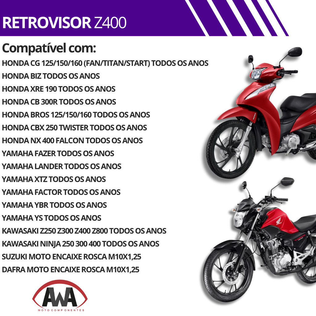 Retrovisor Z400 Mini Kawasaki Honda Yamaha Rosca Haste Fixo