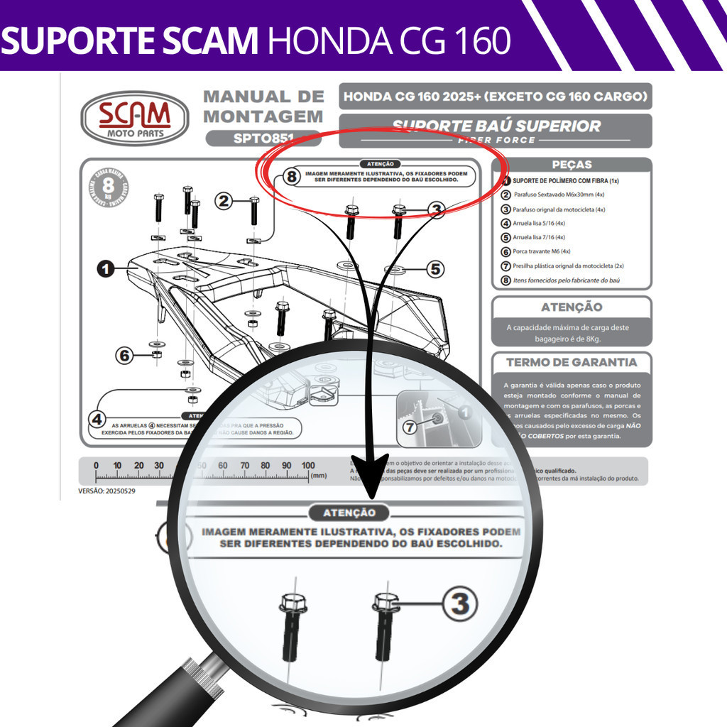 Suporte Bau Bagageiro Cg 160 2025 26 Titan Fan Scam superior