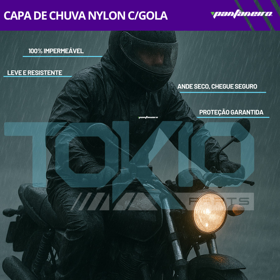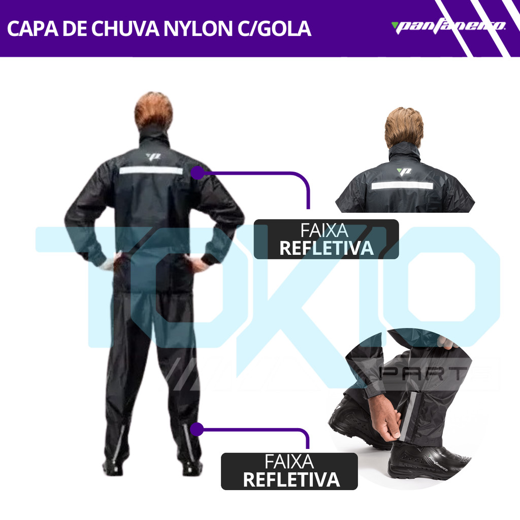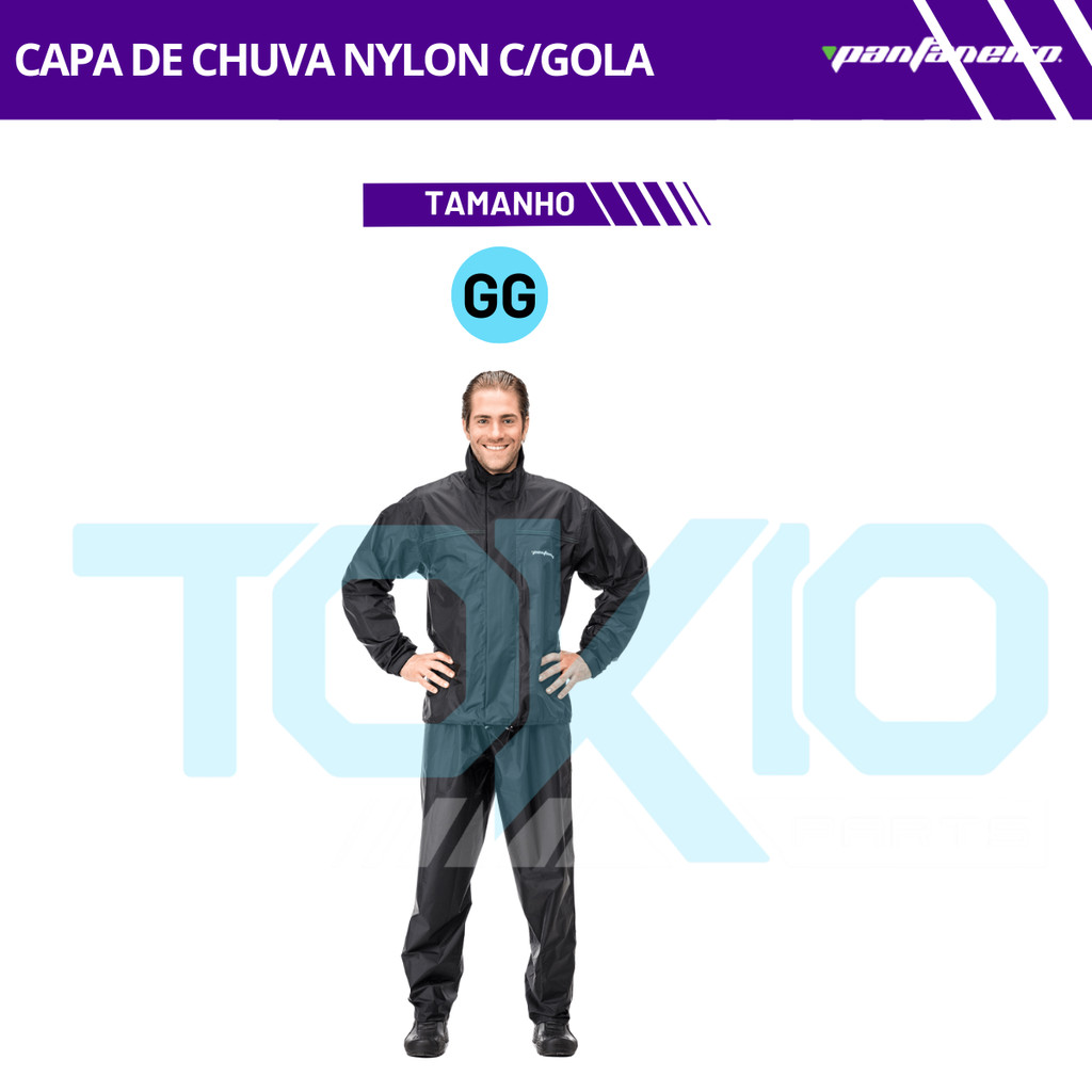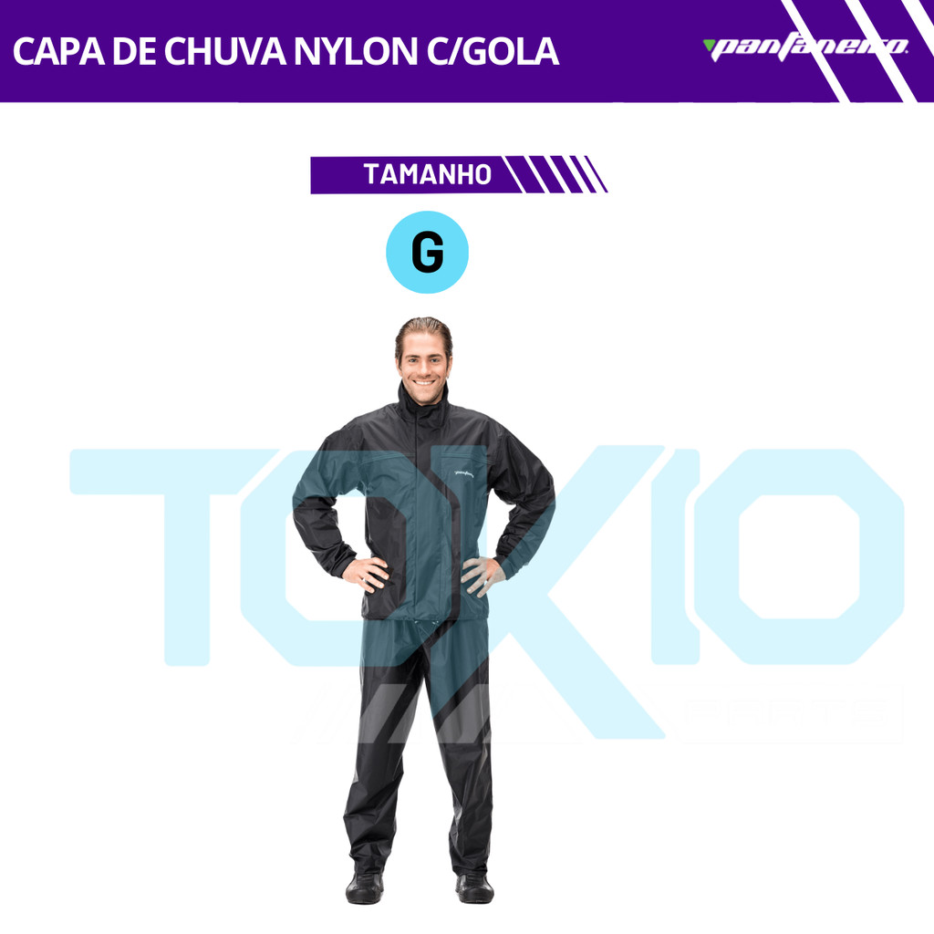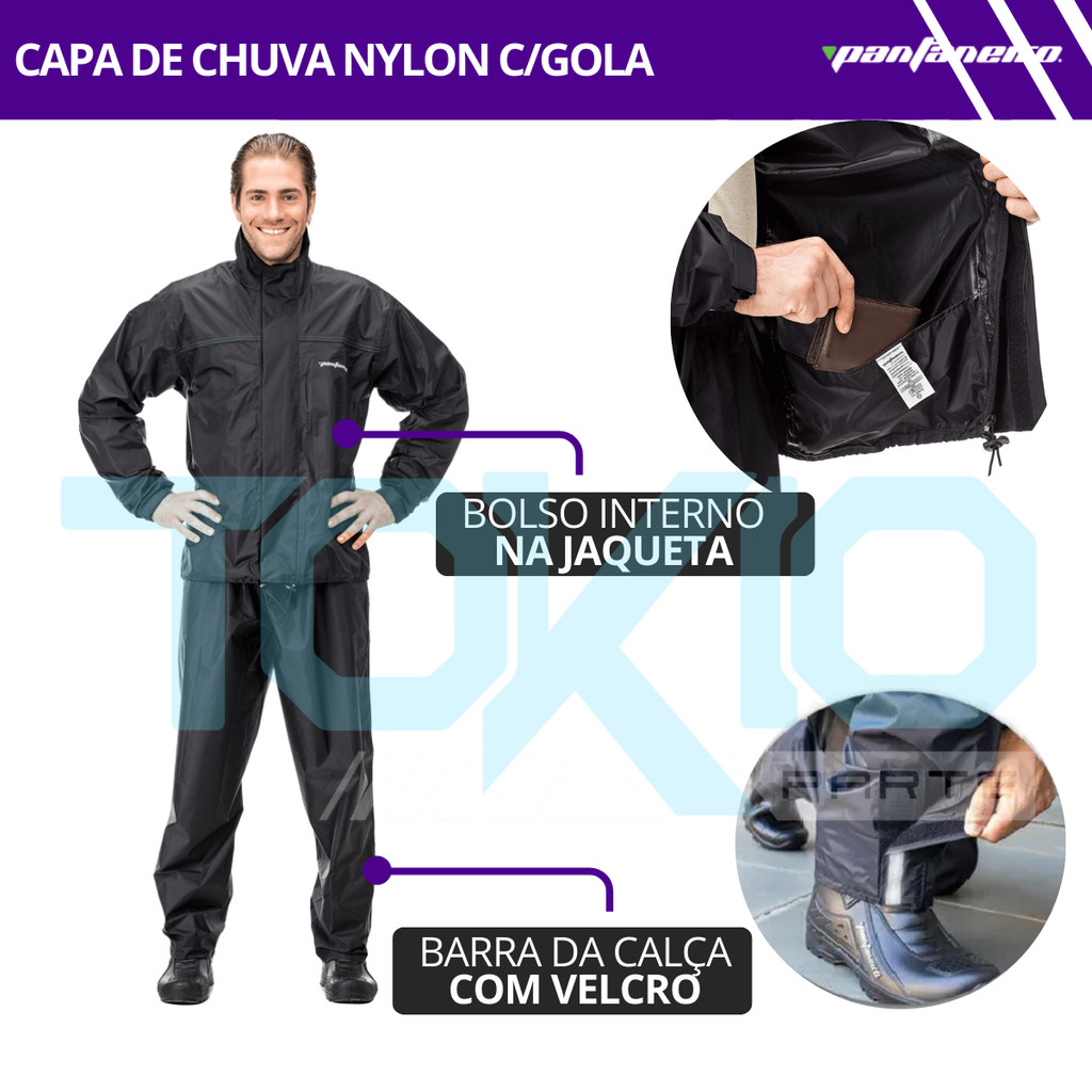 Capa de Chuva Motoqueiro Pantaneiro Conjunto Nylon Com Gola
