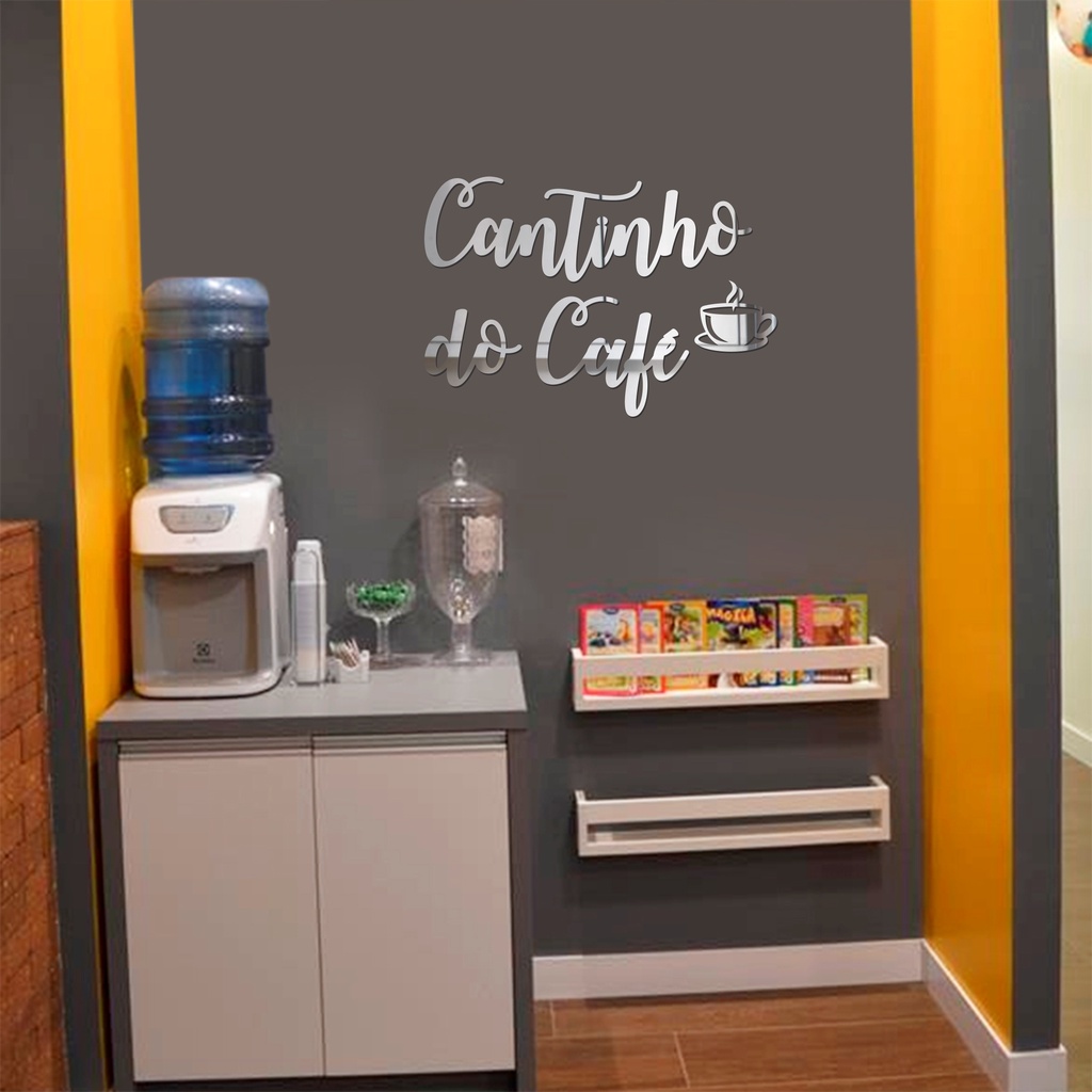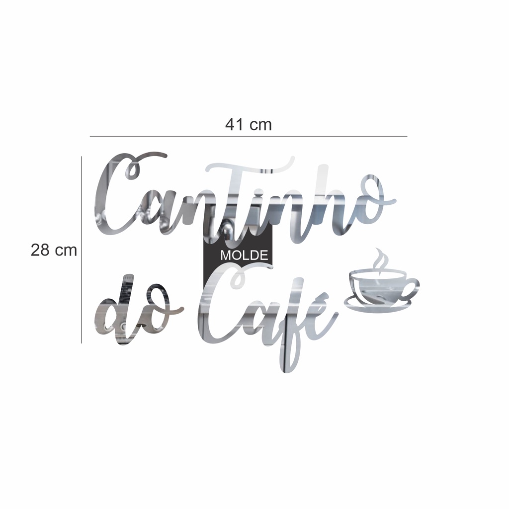 Espelho Decorativo Cantinho Do Café com Xícara Acrílico Prata