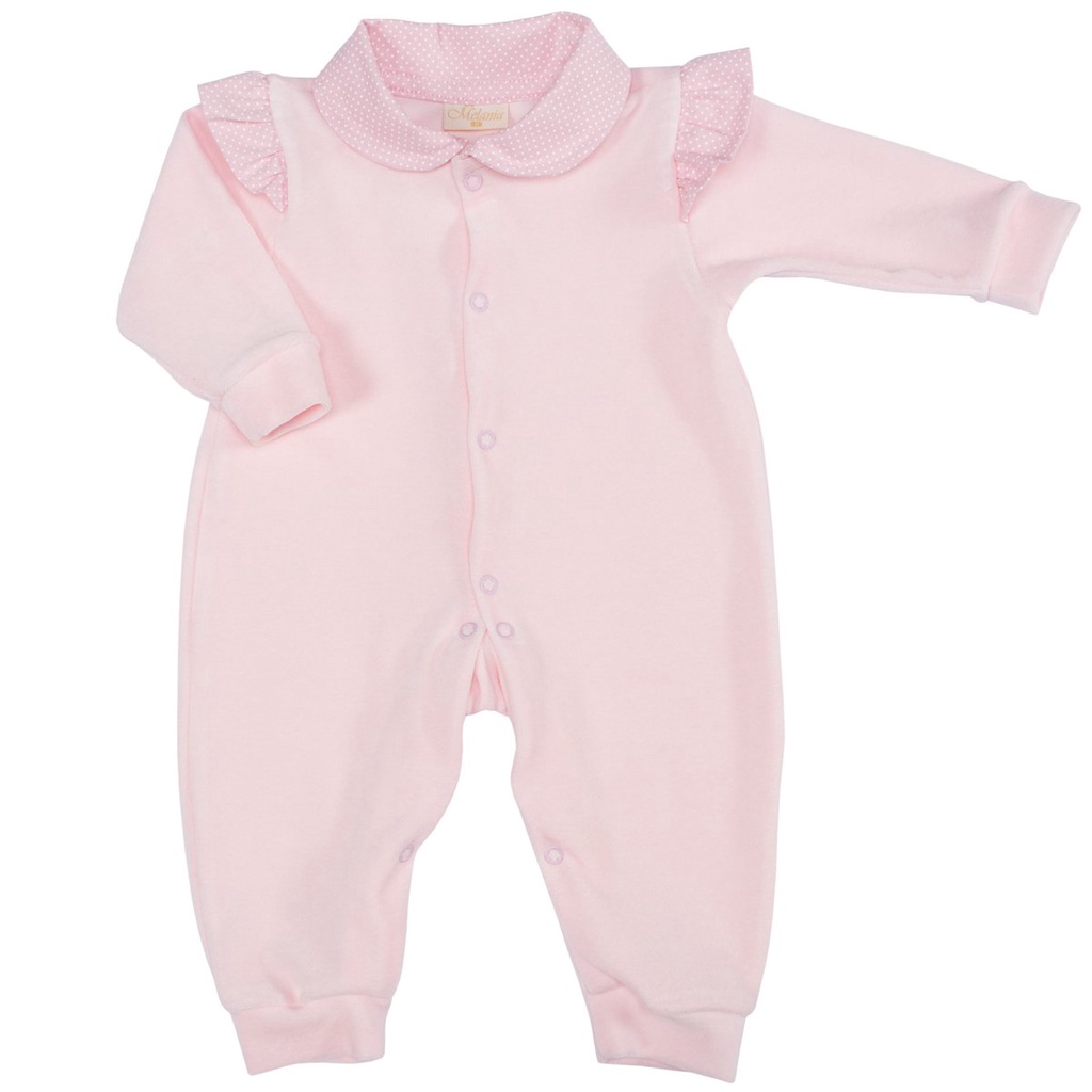 Macacão Longo de Bebê Menina Babadinho Rosa Plush