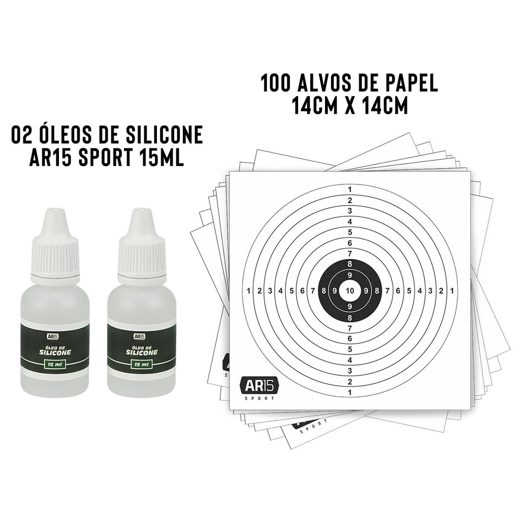 Lubrificante Oleo de Silicone Ar15 Sport 15ml + 100 Alvos de papel