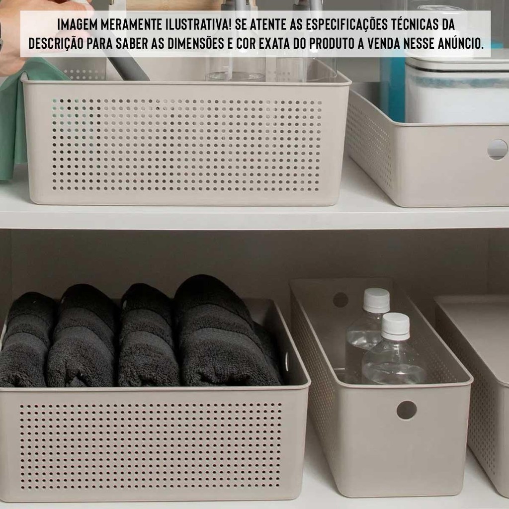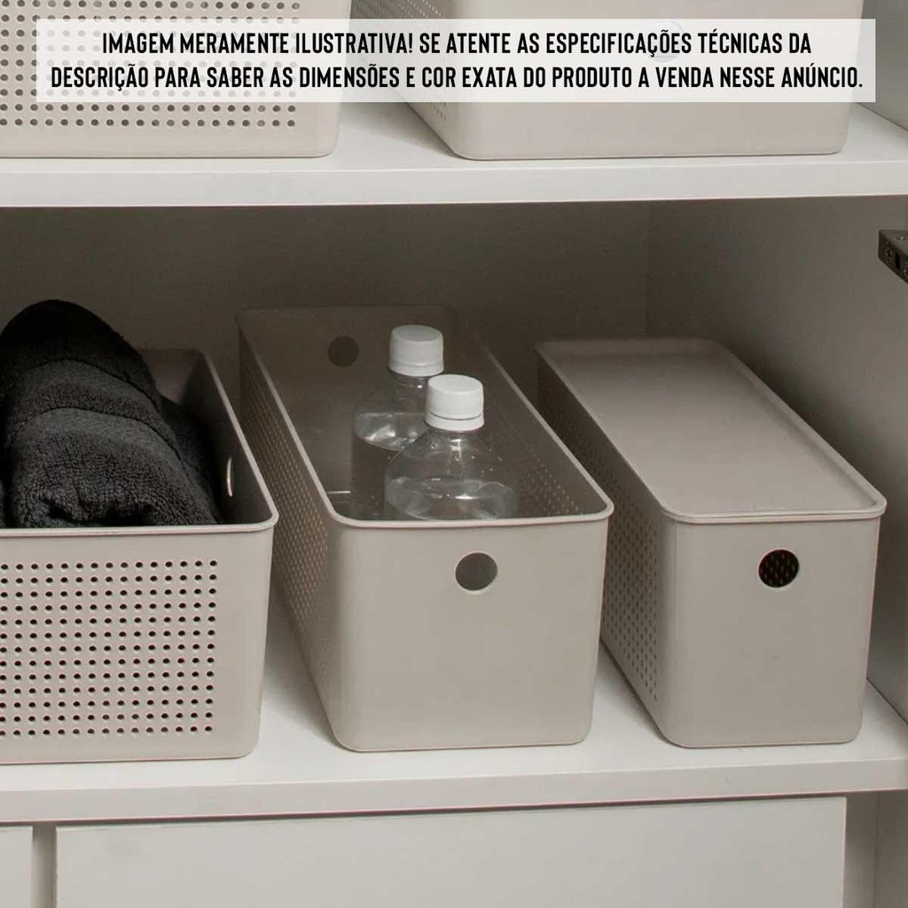 2x Cestos 6,6L Organizador OU Flow Bege 13cm x 15cm x 34cm