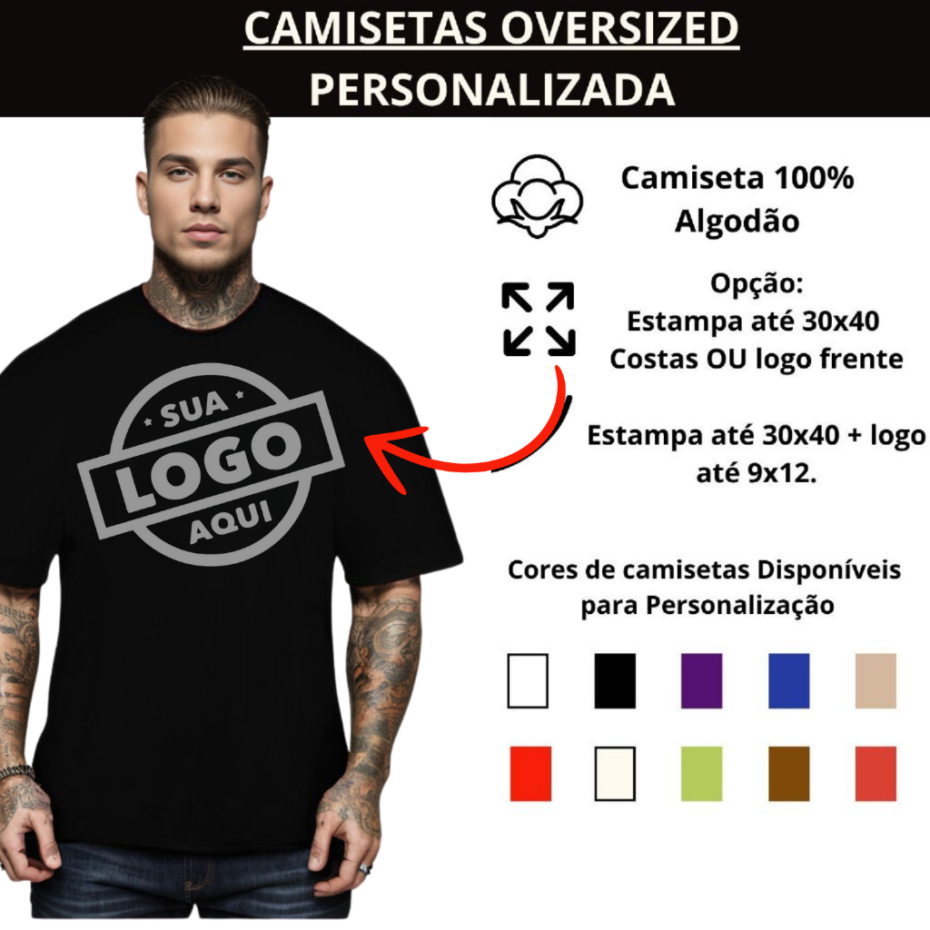 Camiseta Personalizada Oversized 100% Algodão Com Sua Logo