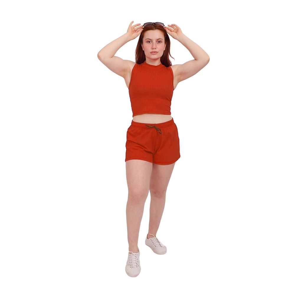 Blusa Feminina Cropped Canelado Gola Alta Sem Manga Cavado Regata Laranja Cenoura