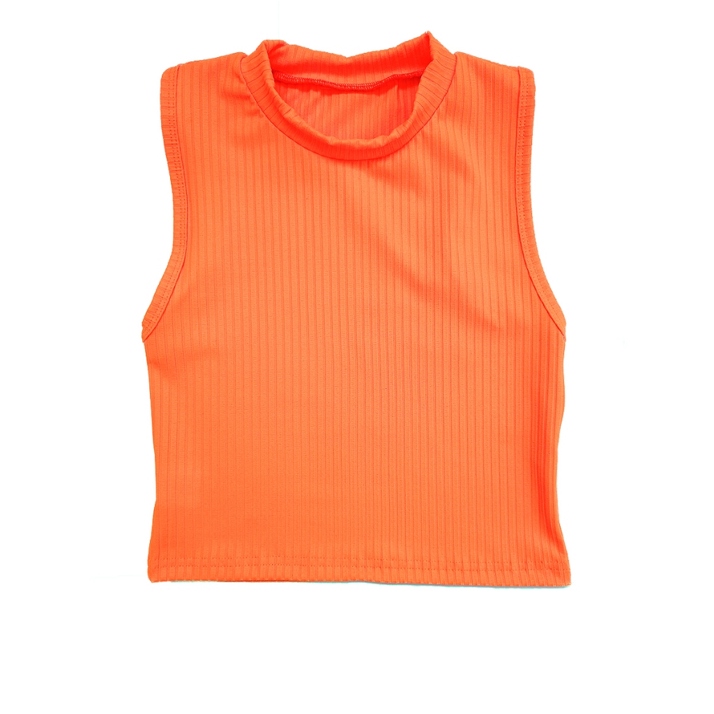 Blusa Feminina Cropped Canelado Gola Alta Sem Manga Cavado Regata Laranja Flúor