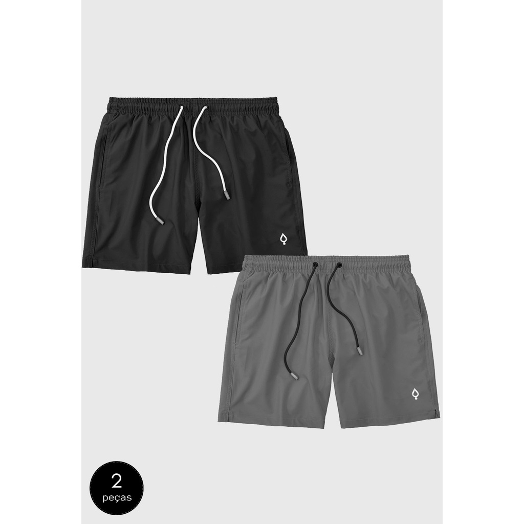 Kit 2 Shorts Bermudas Liso Lisa Masculino Tactel elastano Básico Academia Treino