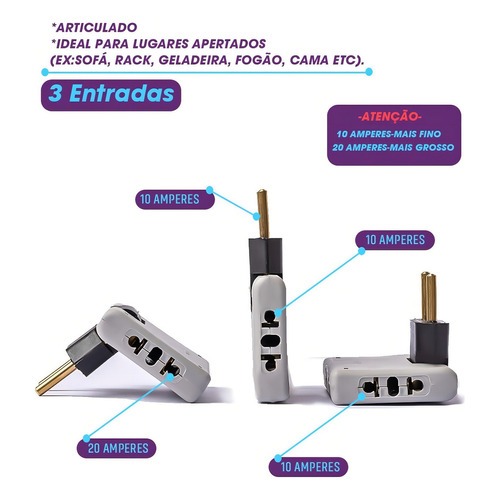 Adaptador Benjamin Articulado Deslocado 10A Resistente Bivolt