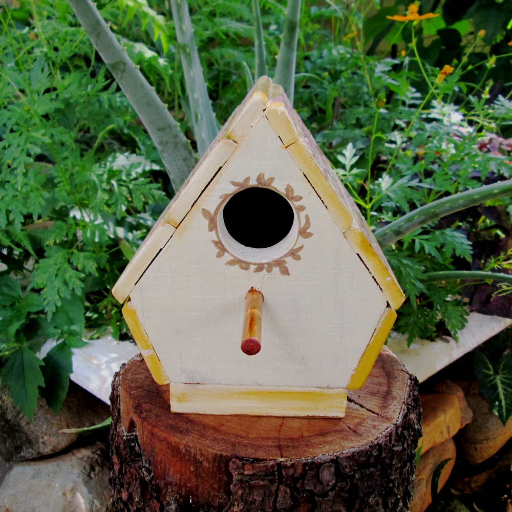 Casinha para Passarinhos Artesanal em Madeira Reaproveitada Pintada a mão - Cerejeira
