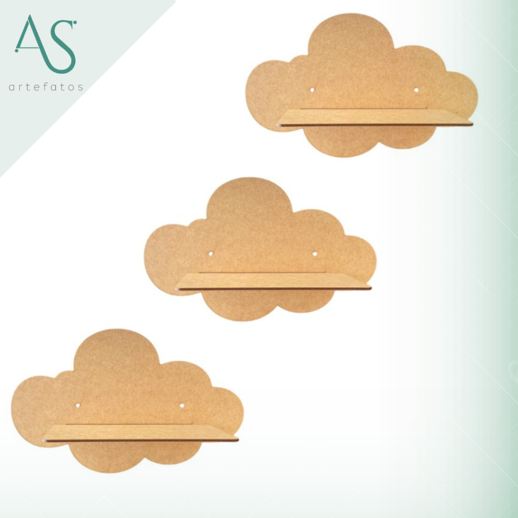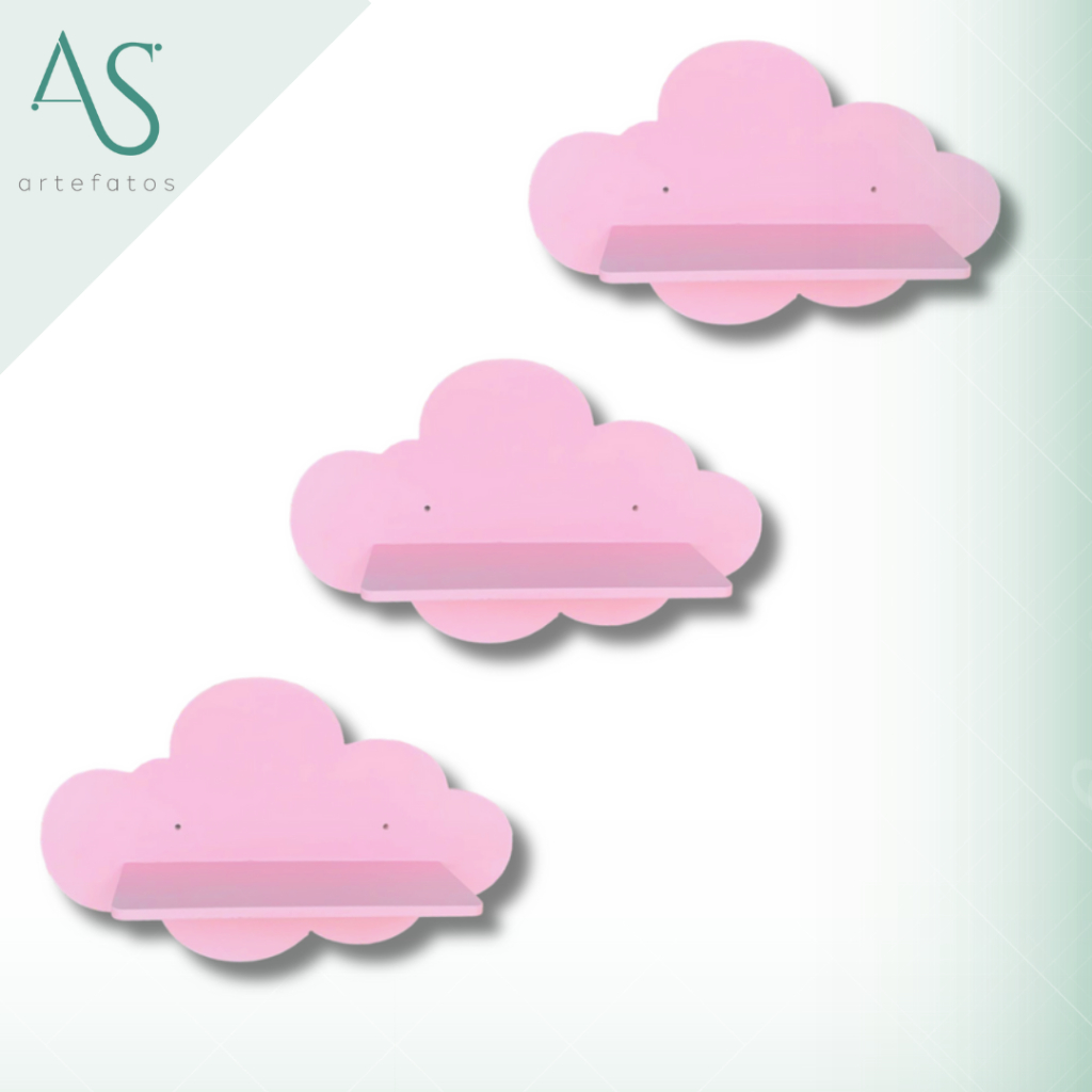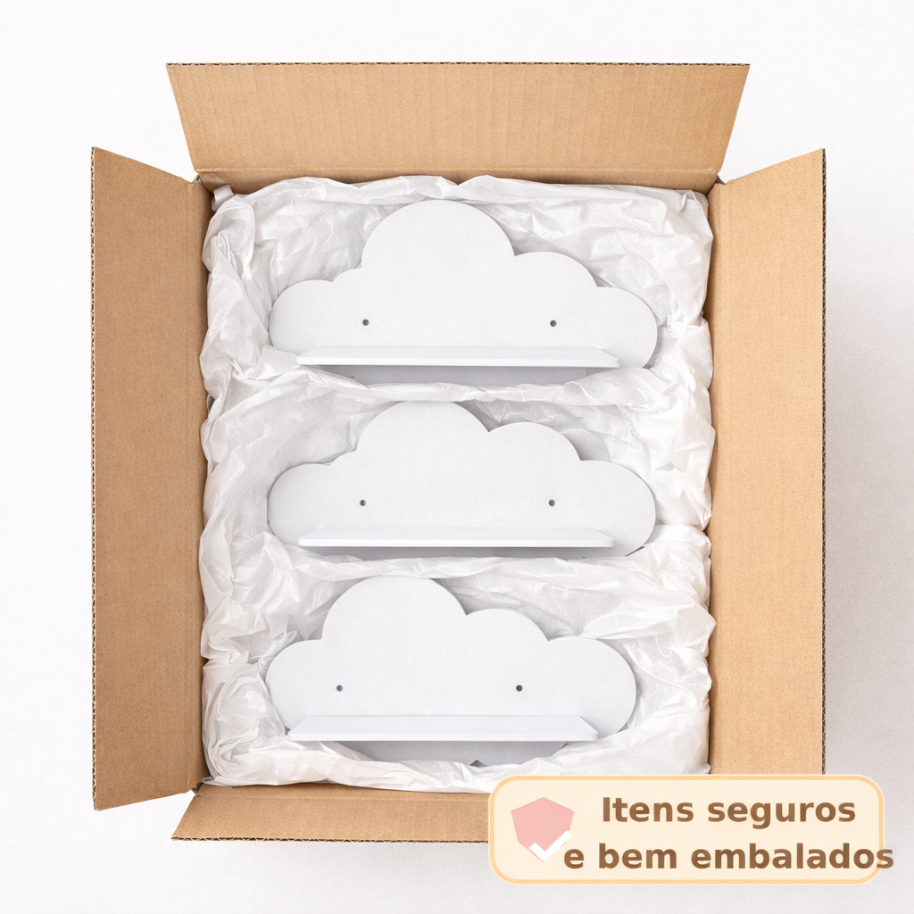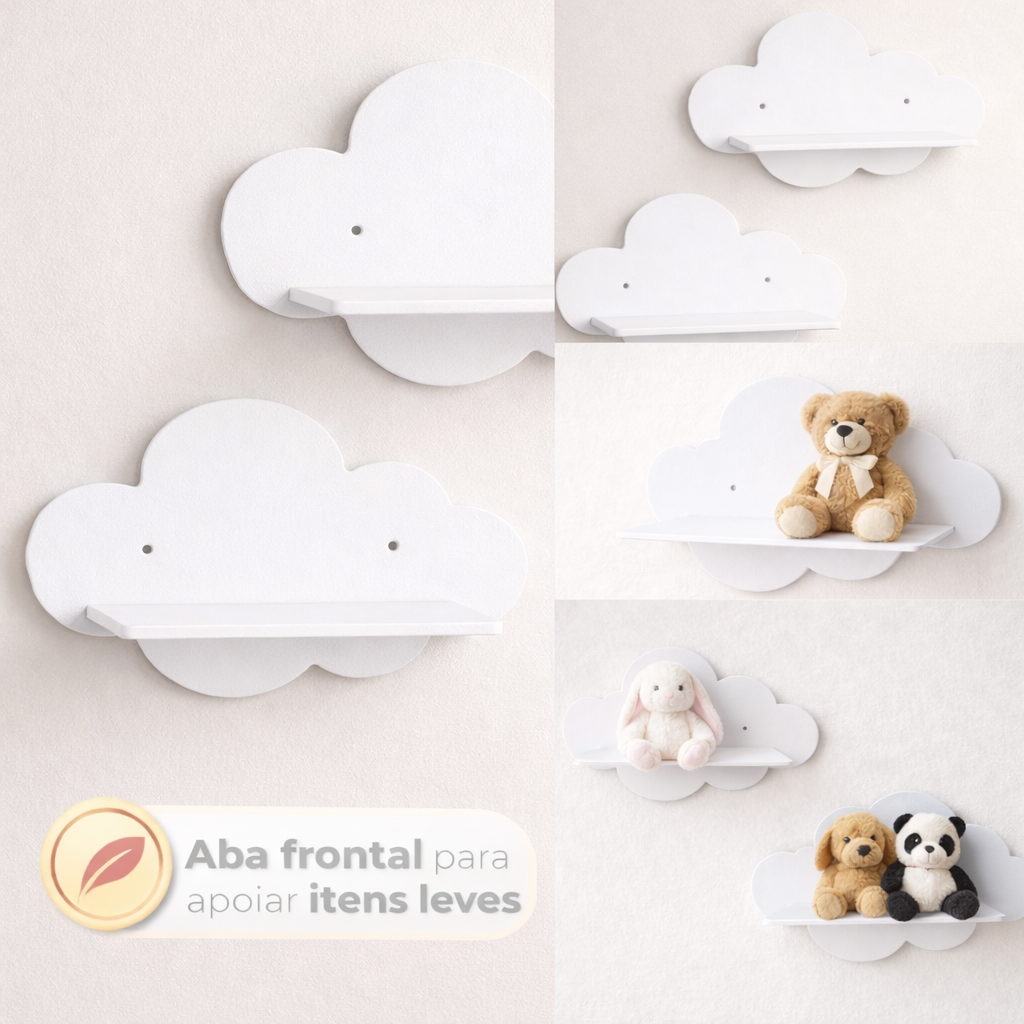 Kit Prateleira Para Quarto Nicho Nuvem 3 Peças