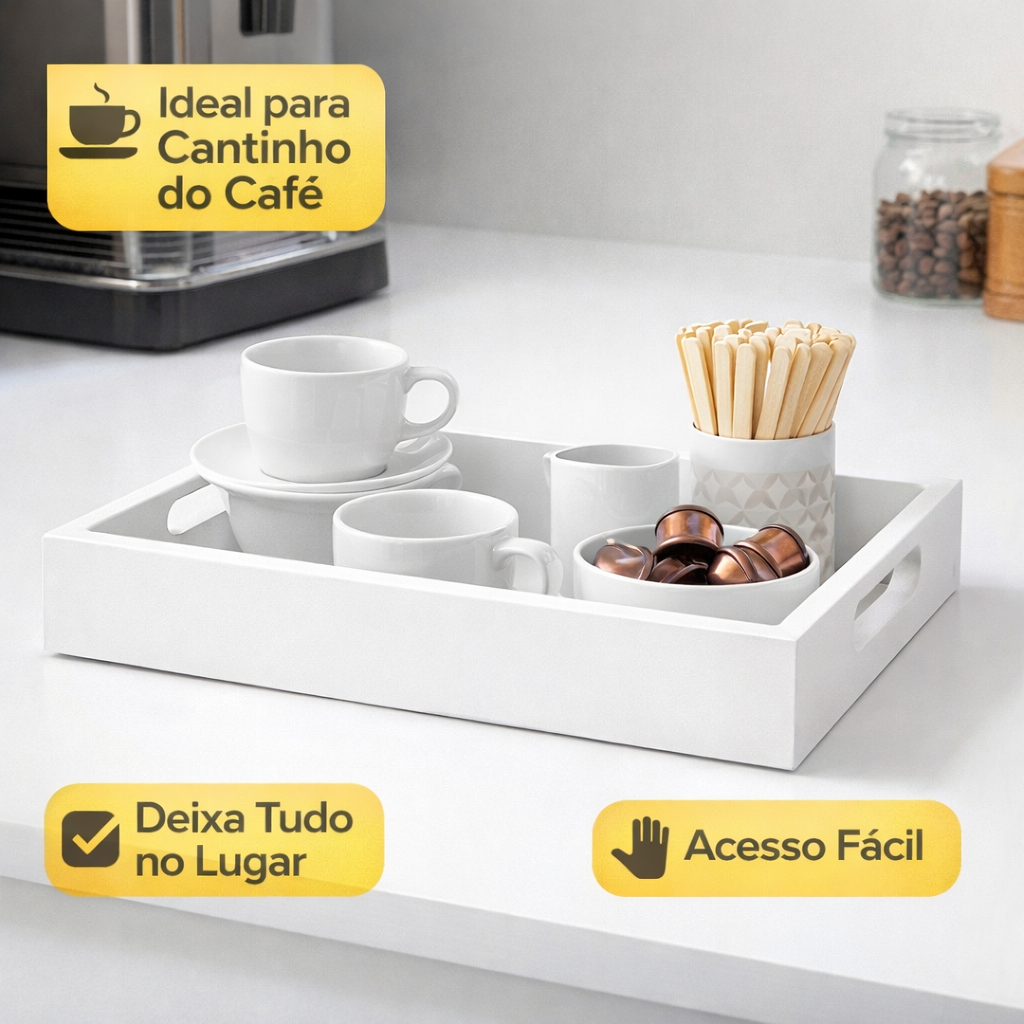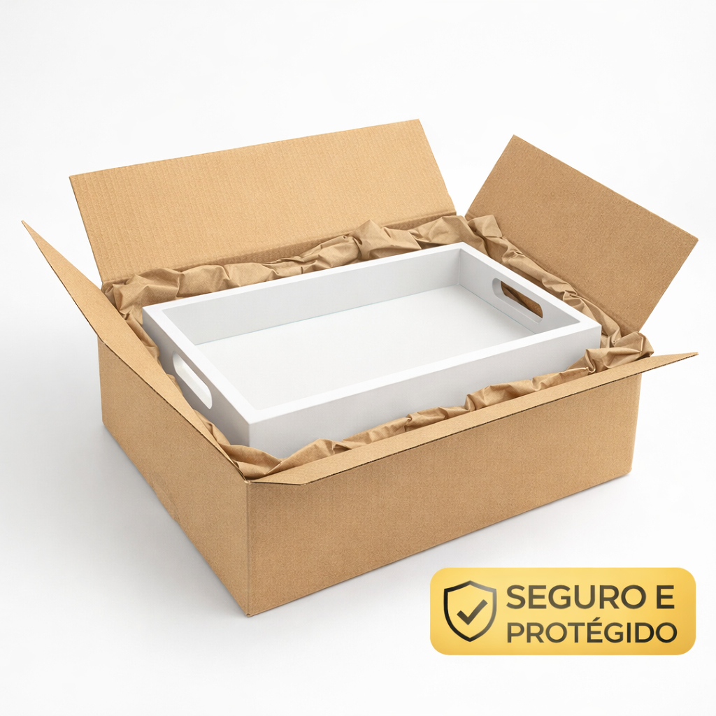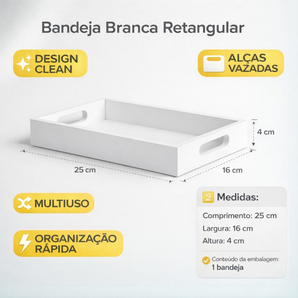 Kit 2 Bandeja Decorativa Organizadora Retangular Branca Mdf
