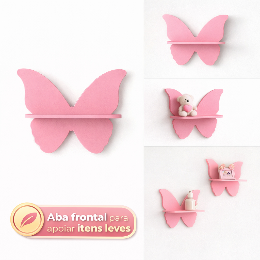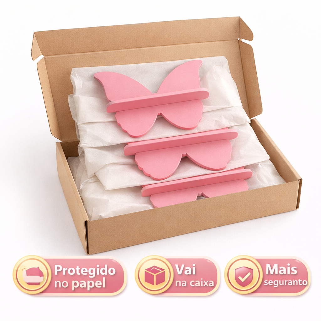 Prateleiras Modelo Borboleta Infantil Decoração Quarto e Sala