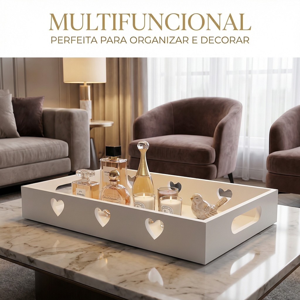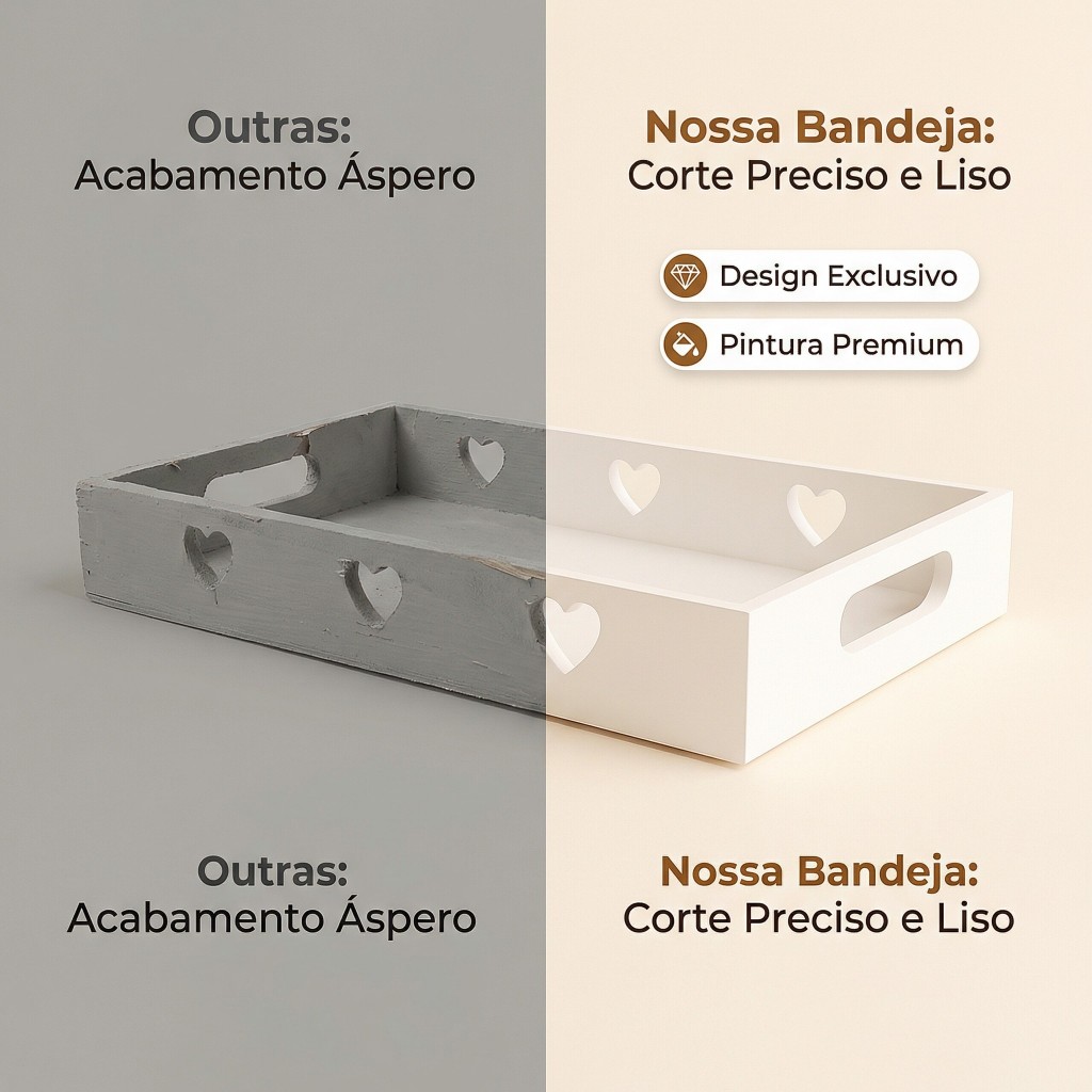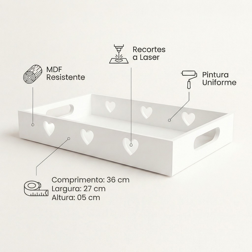 Kit Duas bandejas Corações P e M Em MDF Branco Decorações Casa