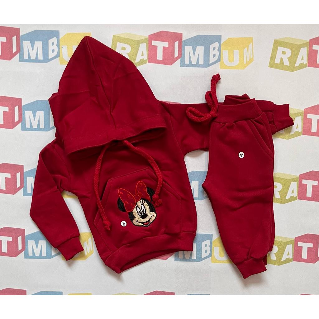 Minnie Conjunto Moletom Minnie e Mickey ou Jardineira Infantil Bebê Flanelado com bordado