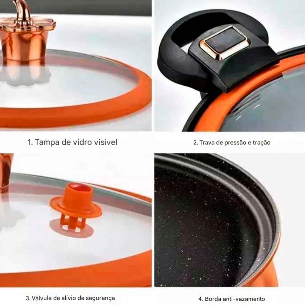 Panela Antiaderente Abóbora de Micro Pressão Caçarola Para Gás e Indução 8L