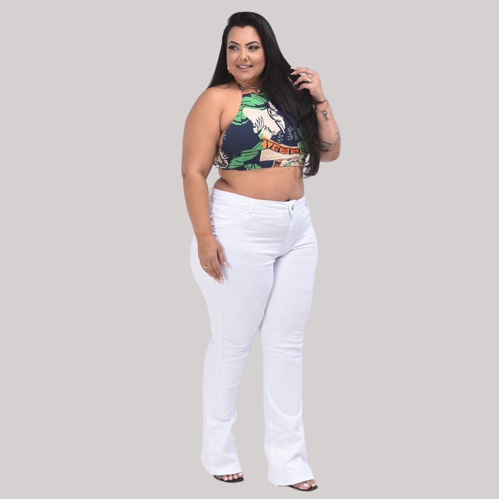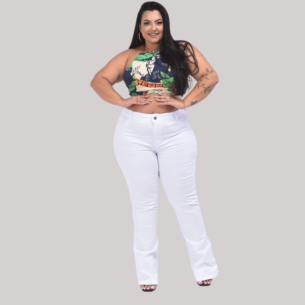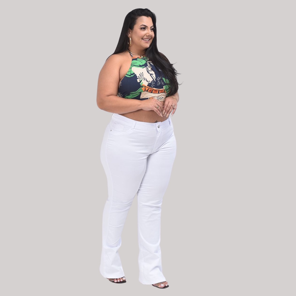 Calça feminina Flare Branca Plus Size Enfermagem