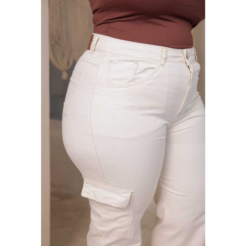 Calça Cargo Bege Plus Size Com Lycra Casual Streetwear