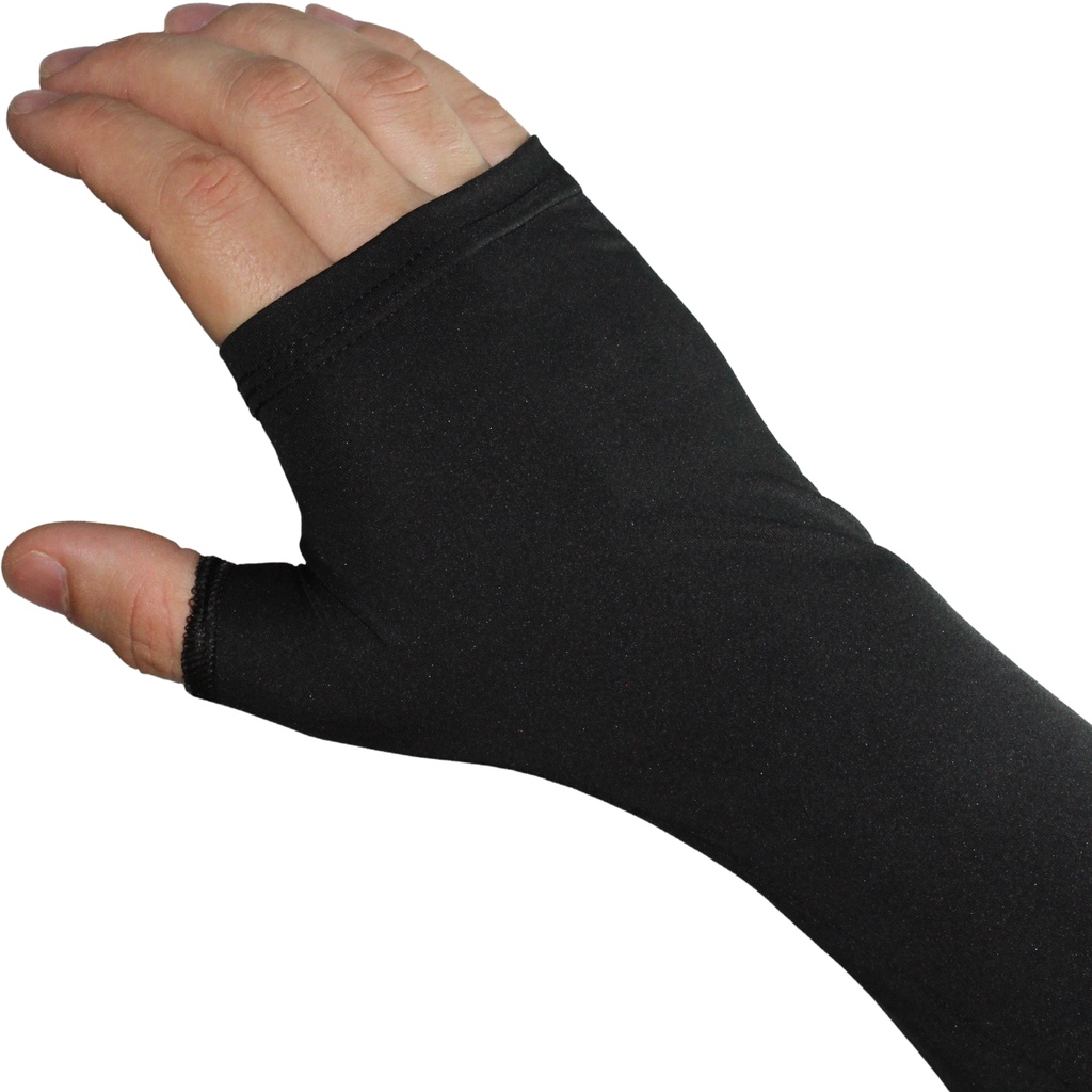 Manguito UV50+ com dedo (par) para ciclistas motoboys caminhadas volei gamer / poliéster com elastano