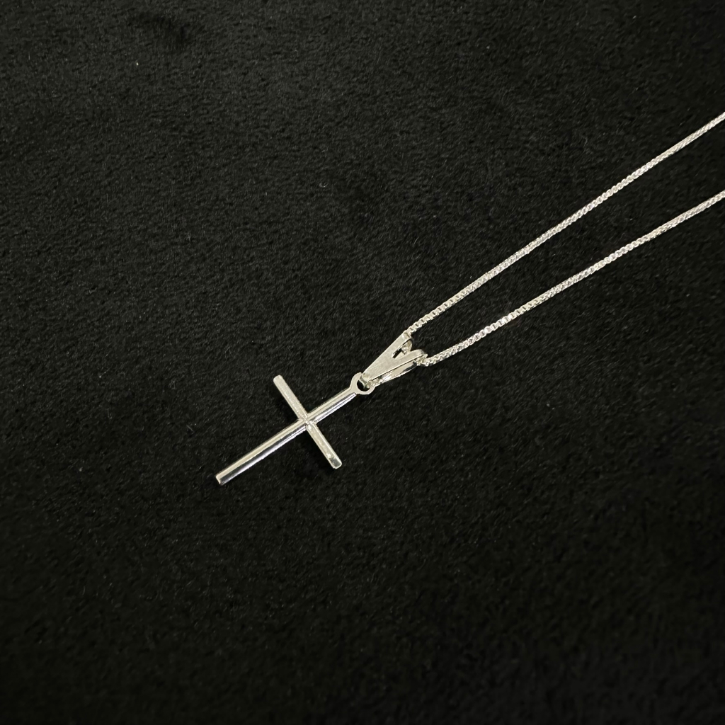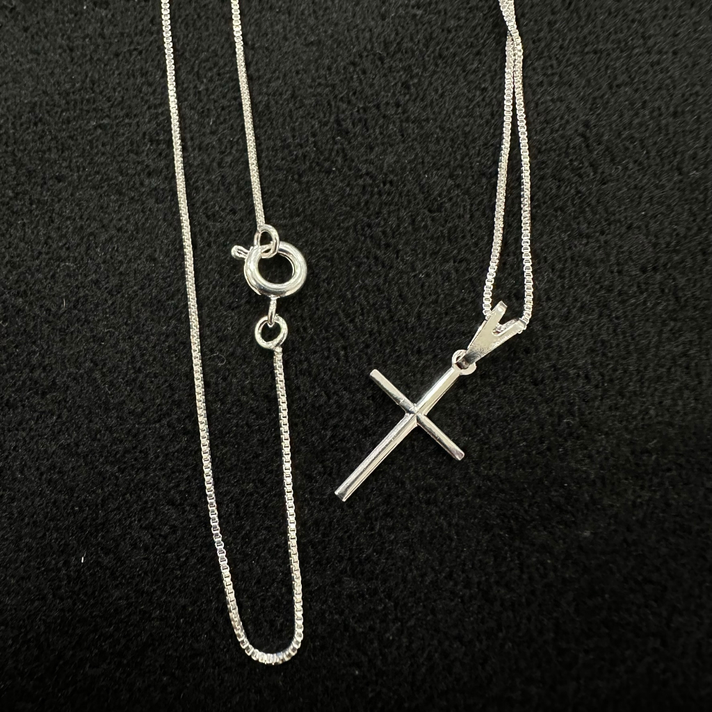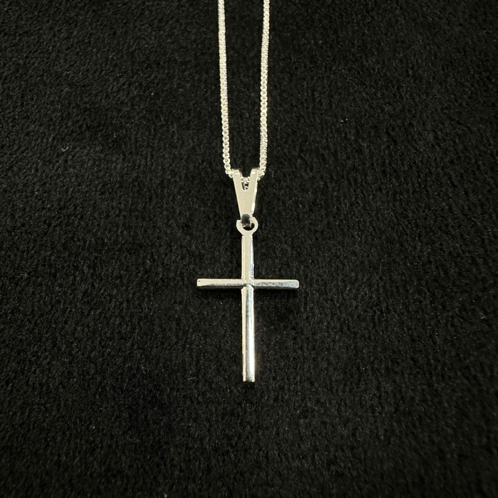 Colar corrente Veneziana 0,8 mm com pingente de cruz palito banho de PRATA 925 +++