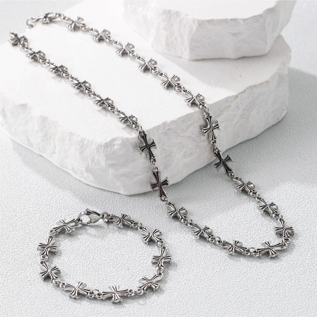 Kit Colar corrente cordão + pulseira com pingente de cruz punk swag y2k