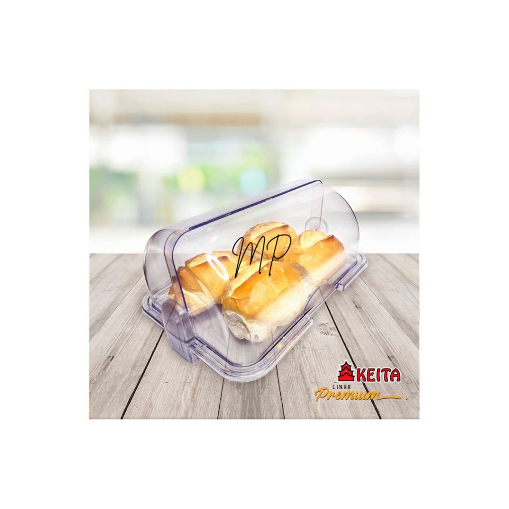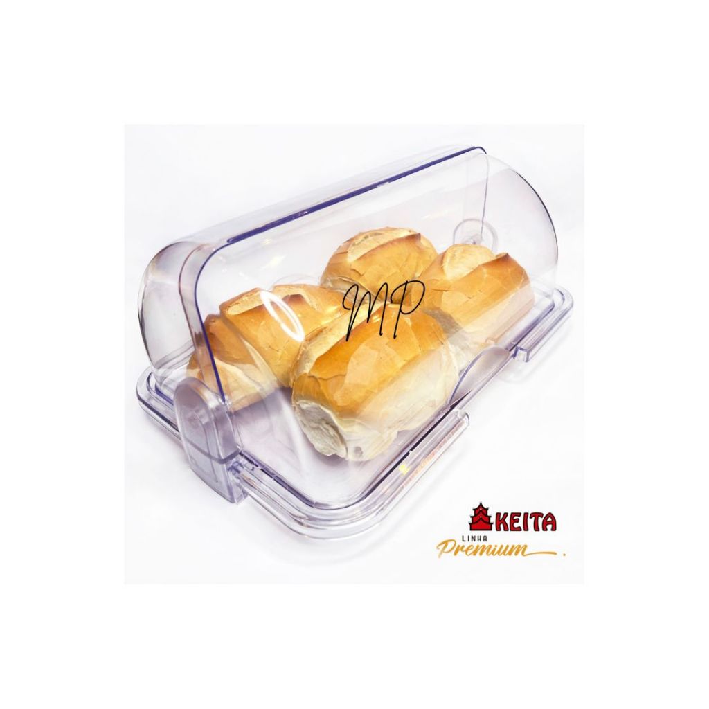 Porta Pão Acrílico 30cm Cristal Basculante Pães e Bolos Keita Premium - MP