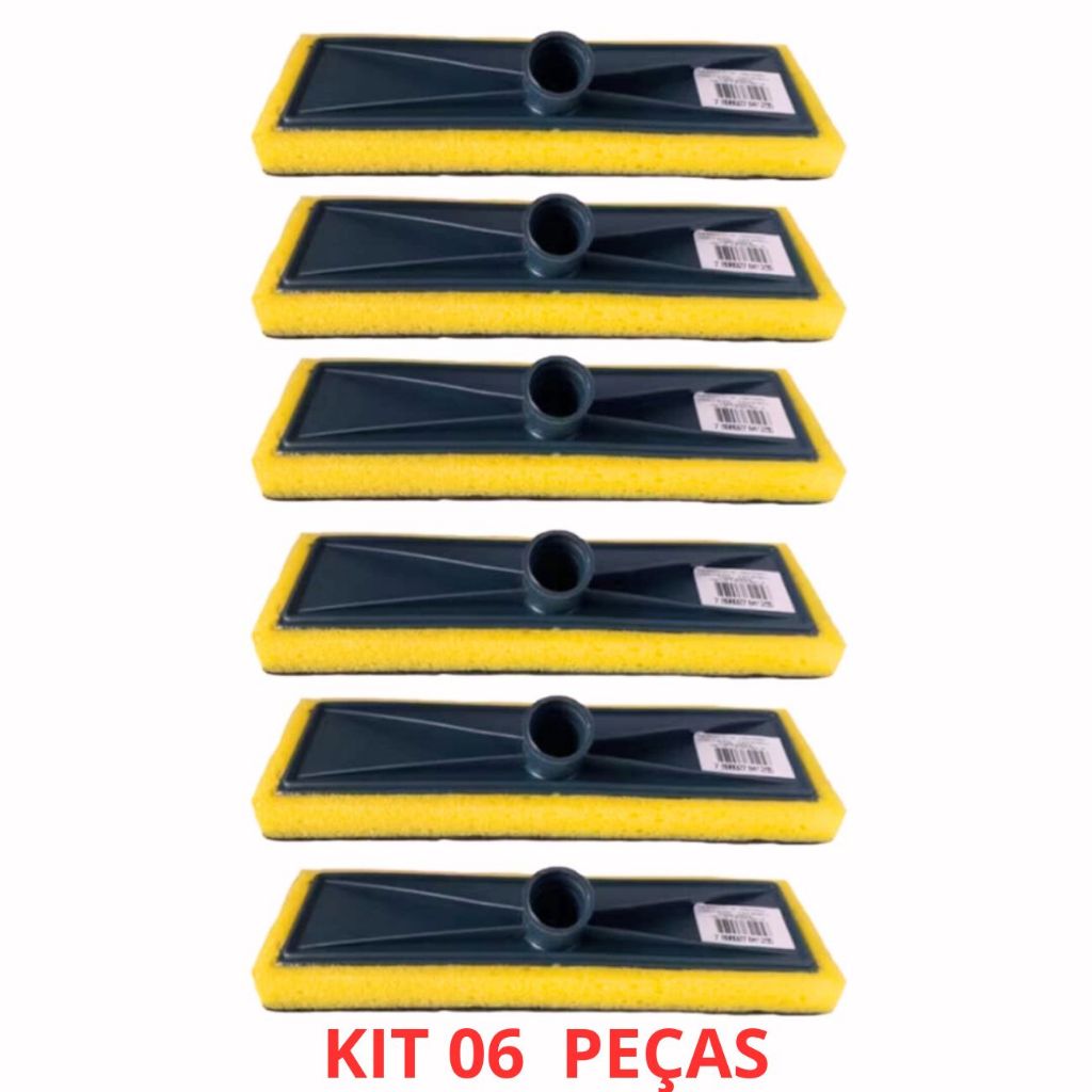 Kit 6 Lava Piso Limpa Azulejo Chão Vidro Porcelanato Passa Cera Esfregão Rodo Abrasivo MOP Sem Cabo