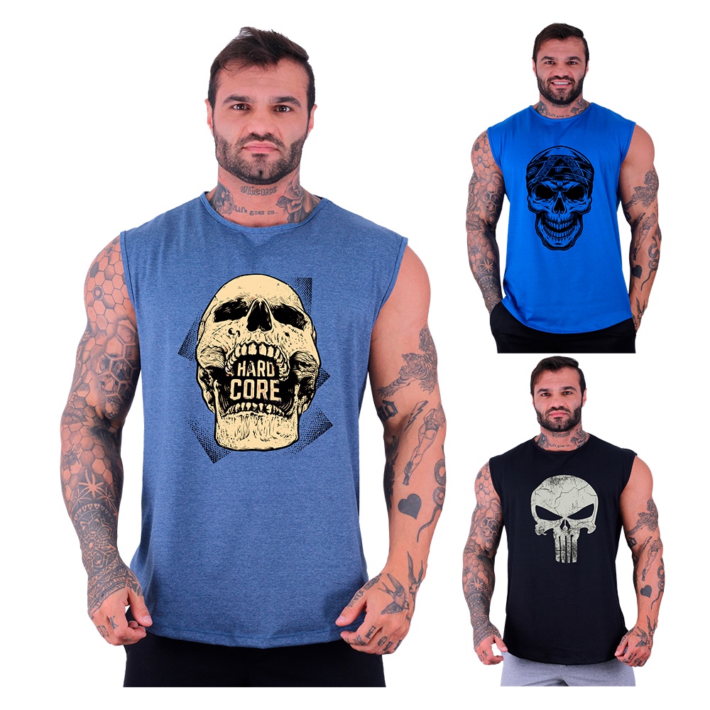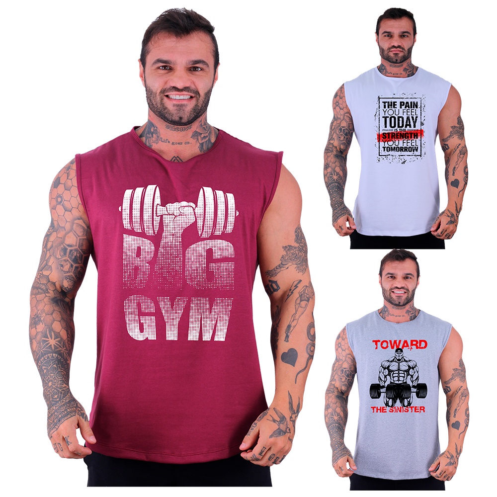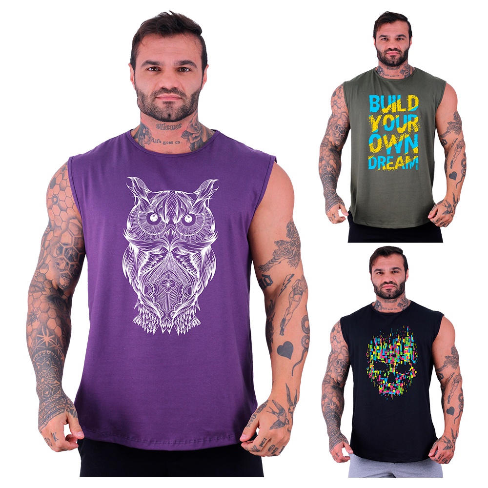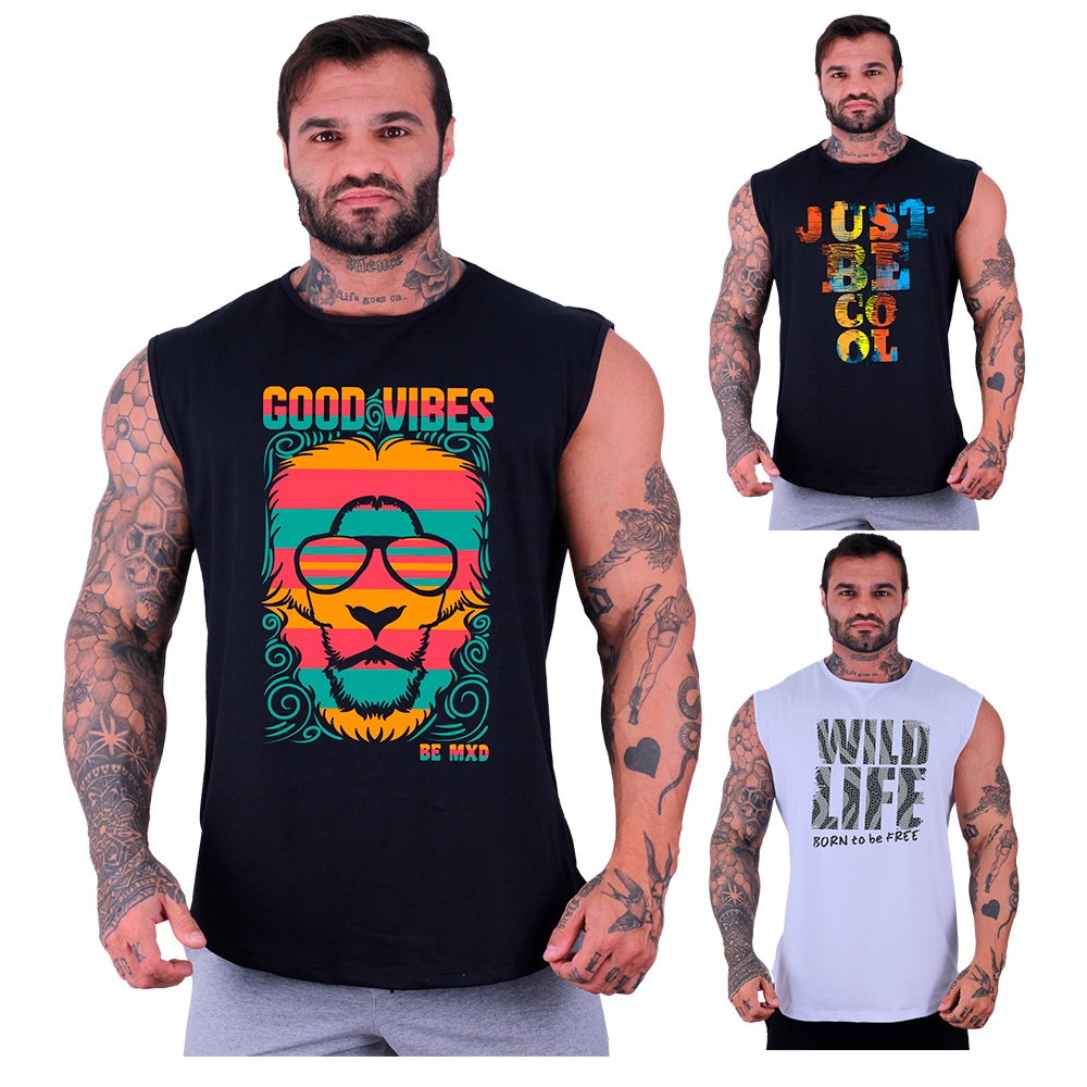 Kit 3 Regatas Machão Longline Masculina MXD Conceito Academia Musculação Casual