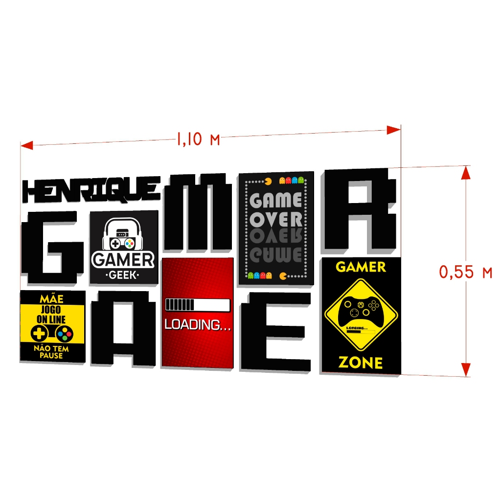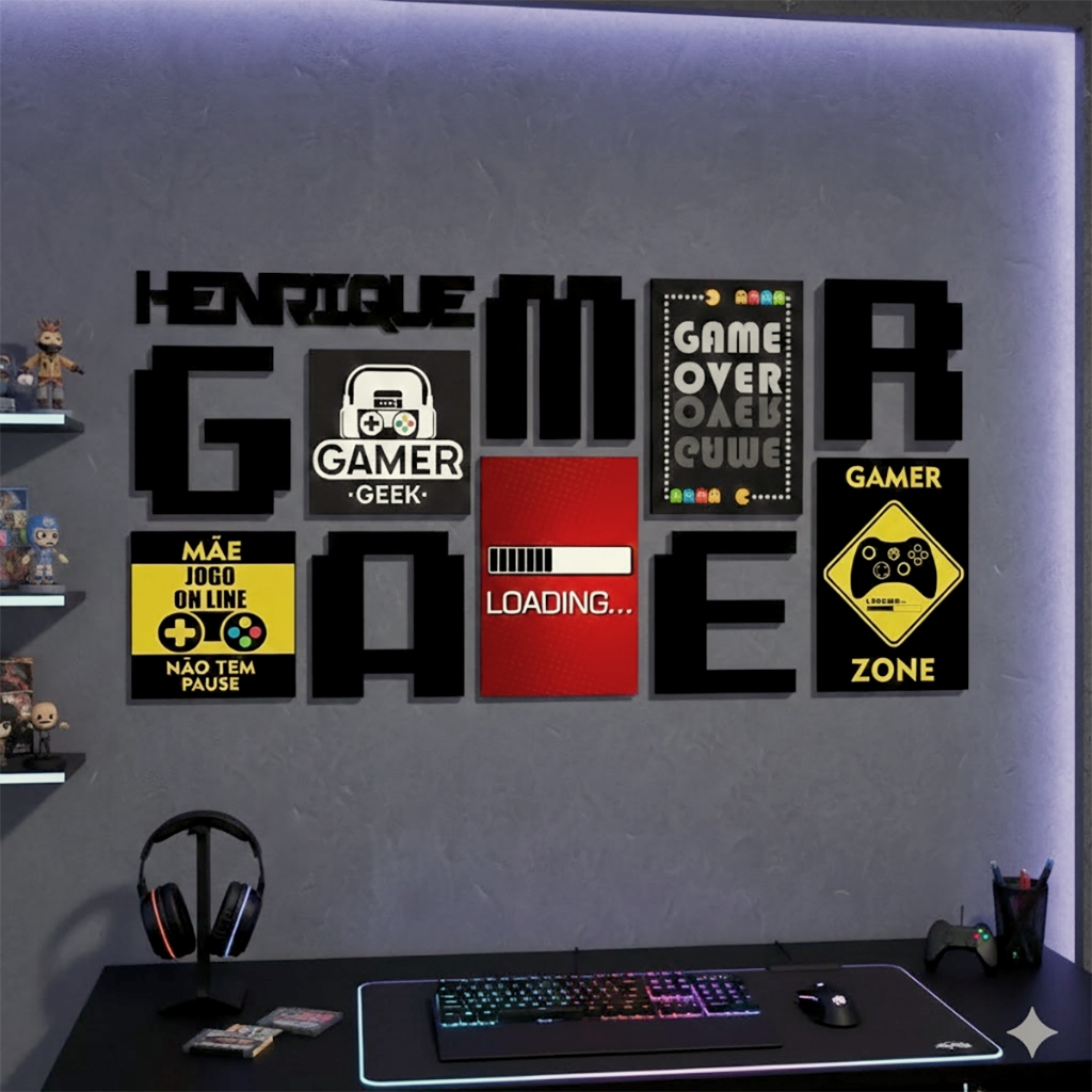 Conjunto Placas E Letras Gamer Personalizado Nome