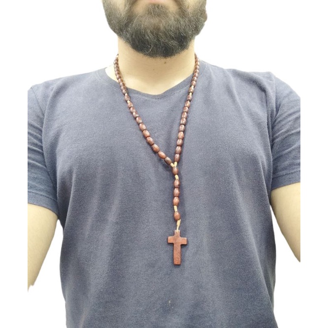 terço de pescoço em madeira ou aço inox medalha de são Bento