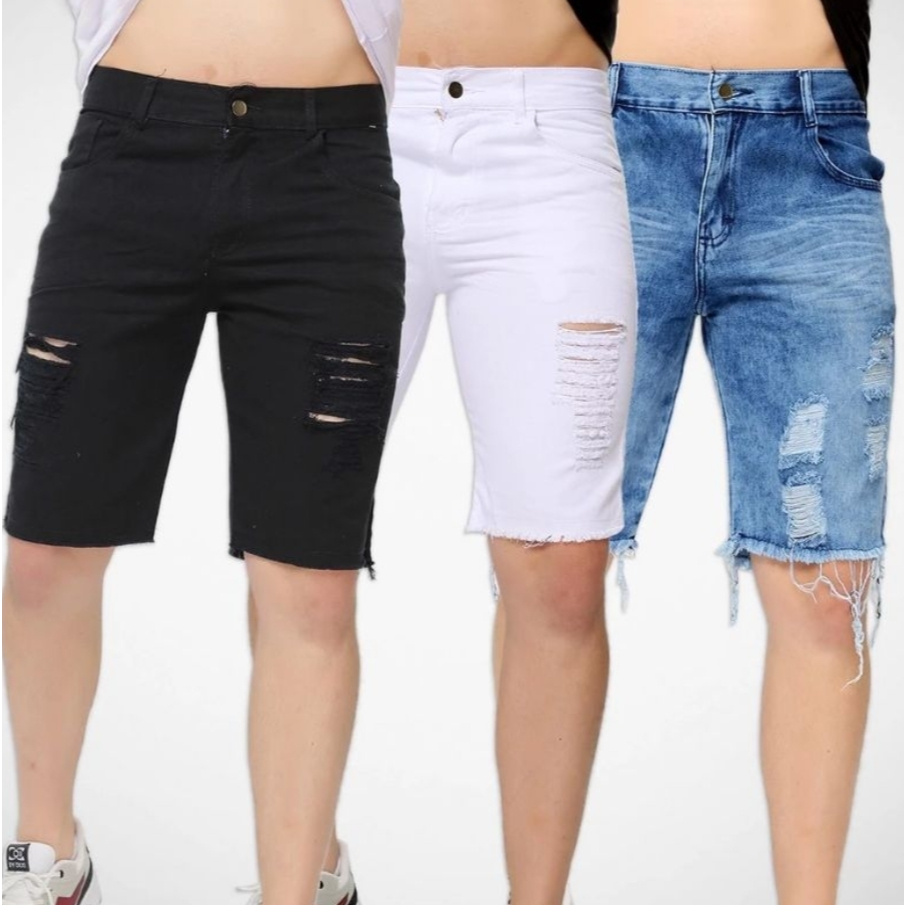 Kit com 4 Bermuda Jeans Masculina Short Rasgado Desfiado Destroyd Shorts Jeans Reforçado Envio Hoje