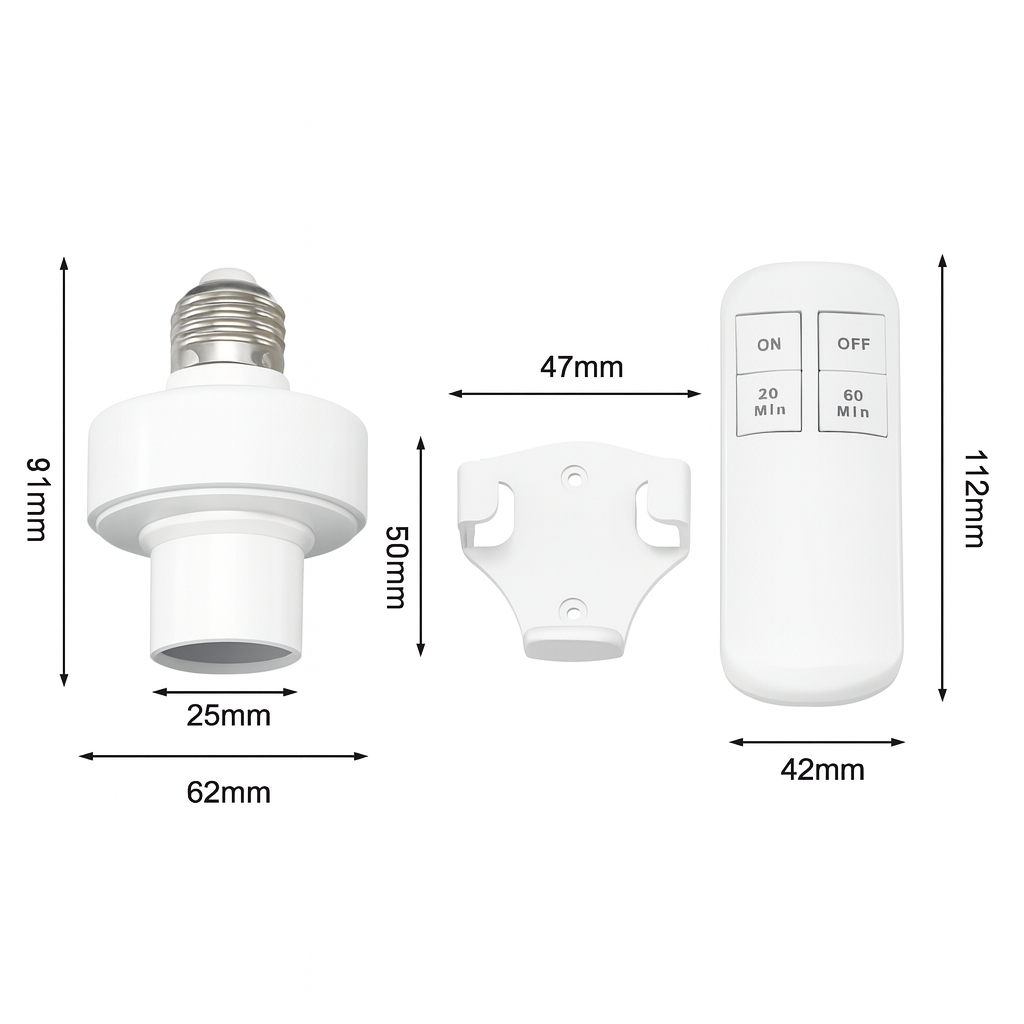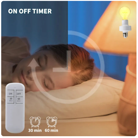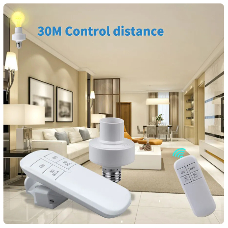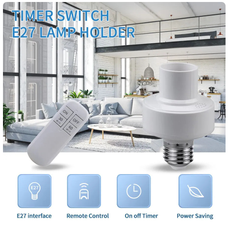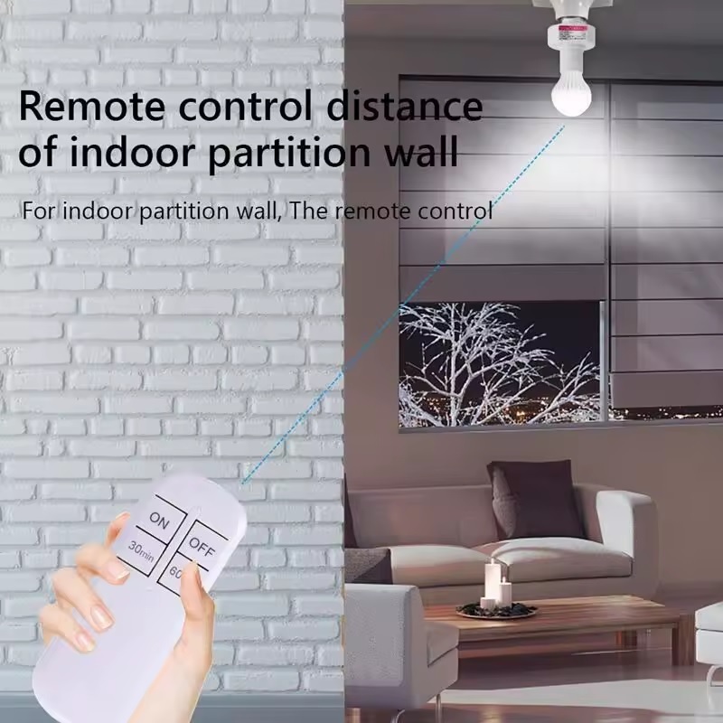 Suporte da lâmpada sem fio inteligente com temporizador, controle remoto, alcance de 15m, bivolt, E27