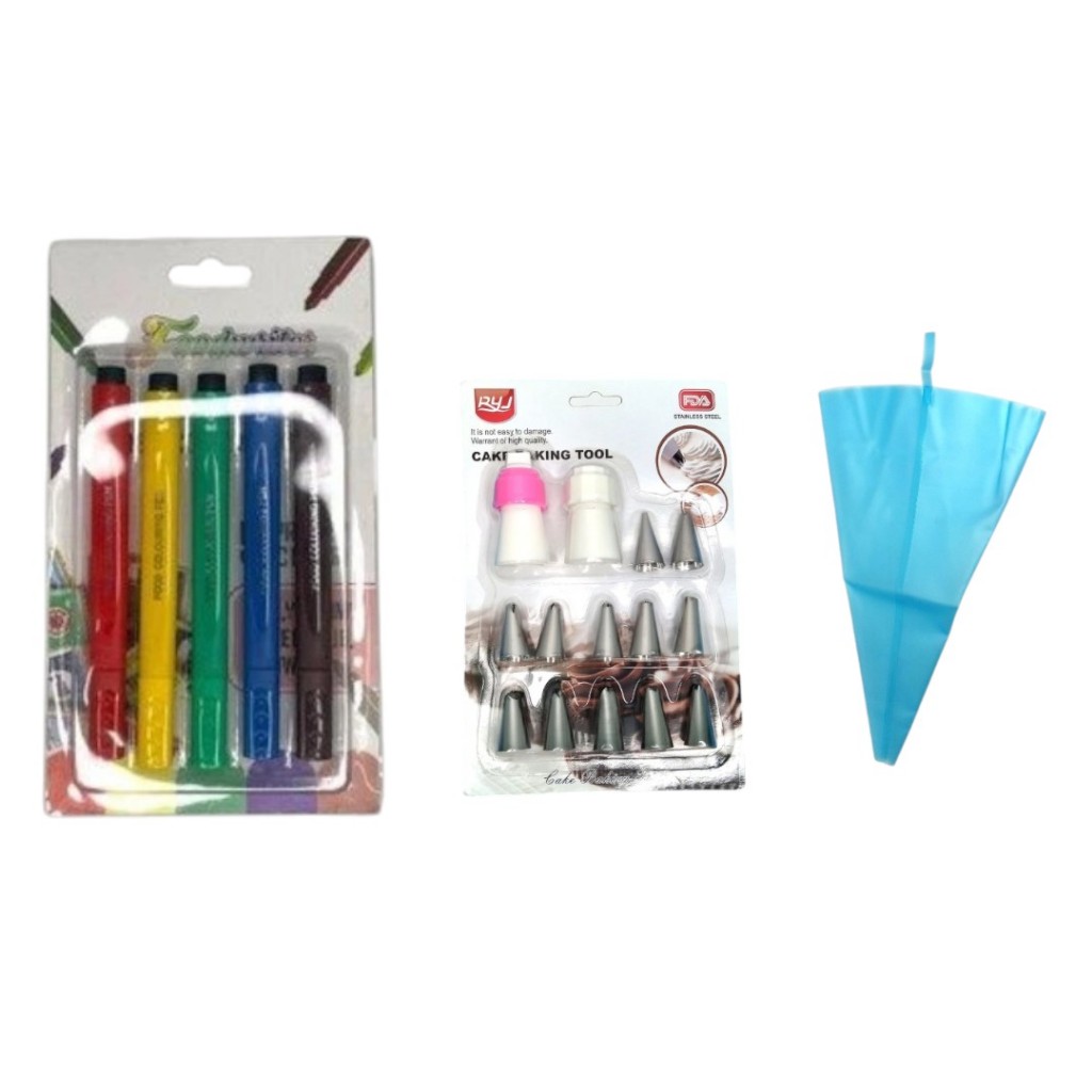 Kits de Canetas de Tinta Coloridas e Pretas Alimentícia para Confeitaria e Decoração