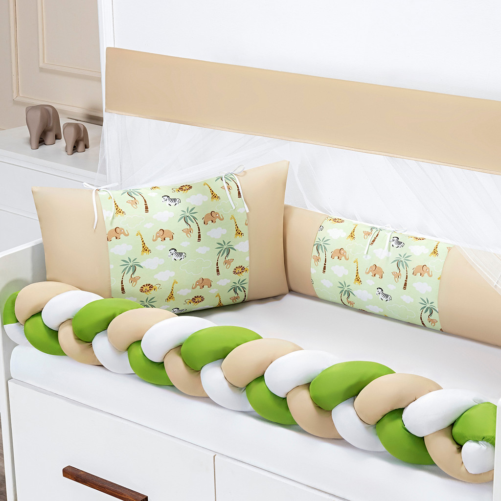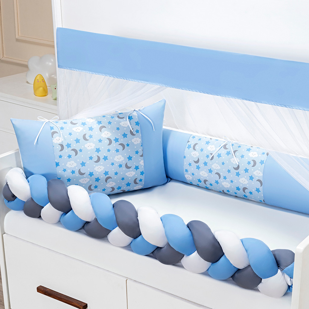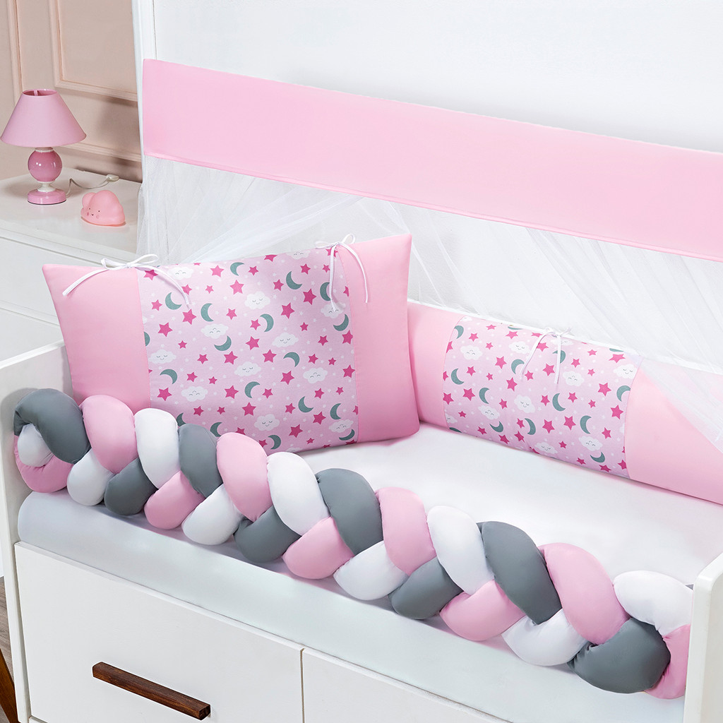 Kit 06 Peças Para Berço Americano Fofuxo Estampado Basico Com Trança Toque Macio