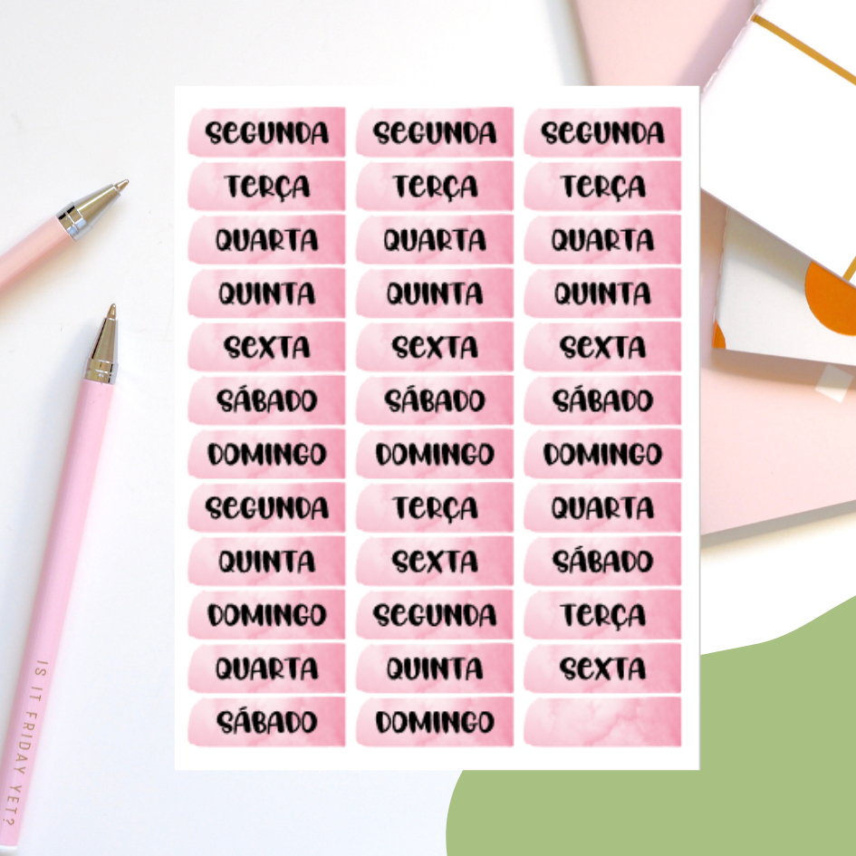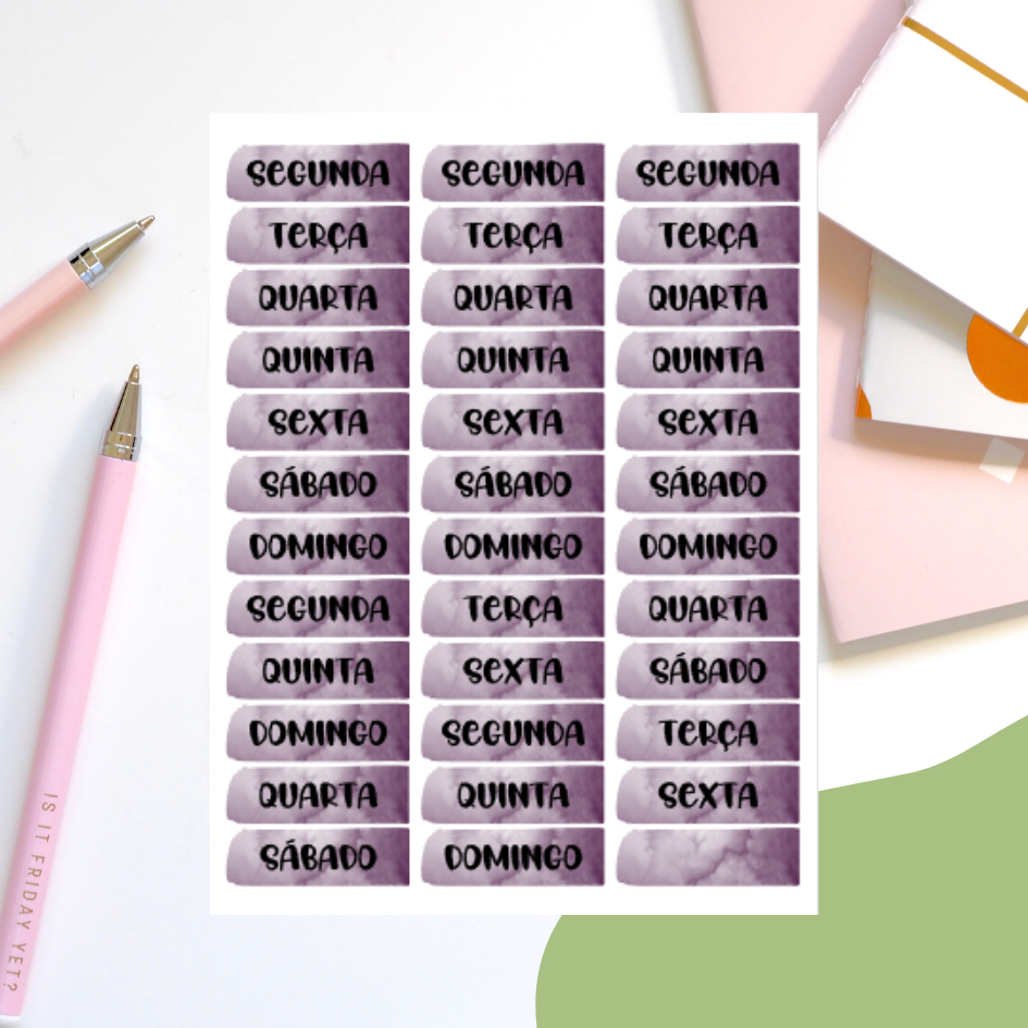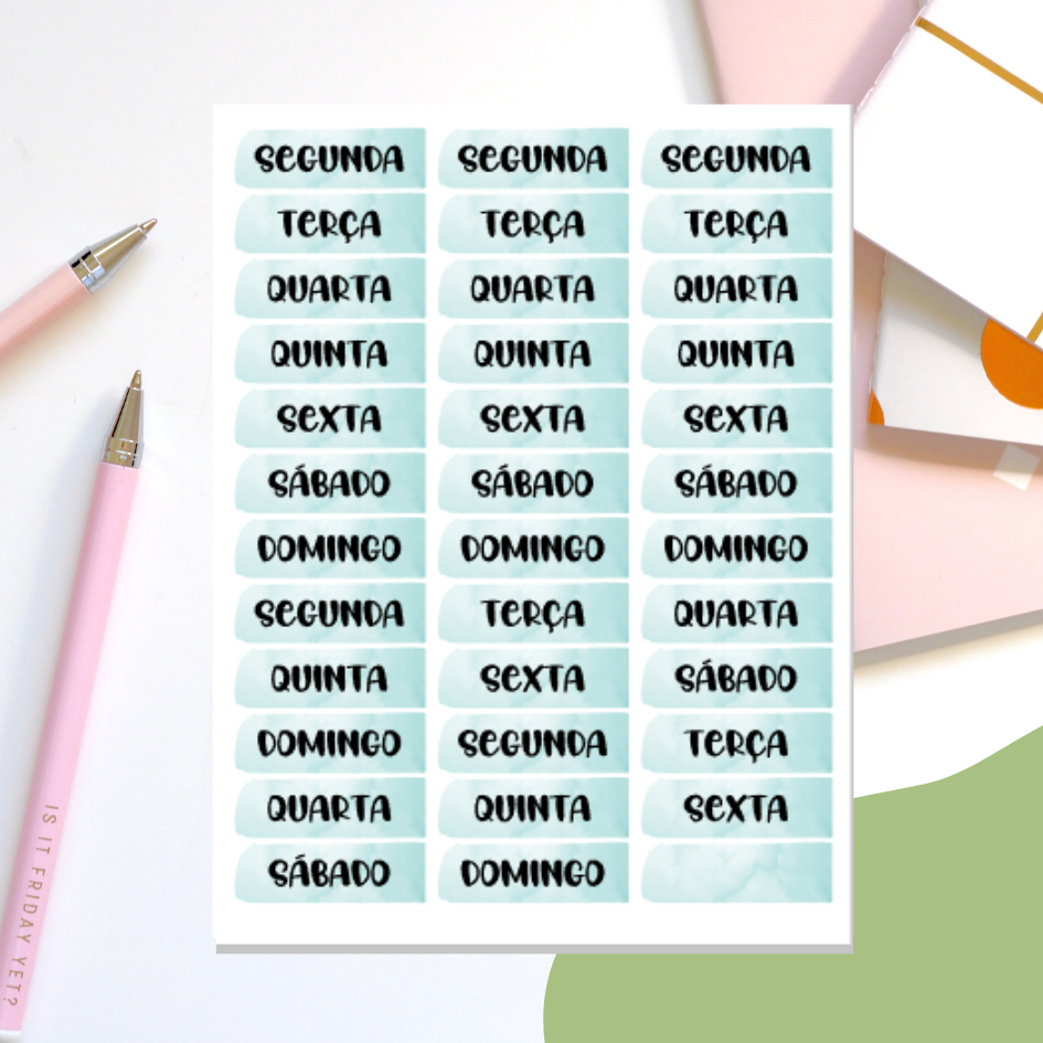 cartela de adesivo com dias da semana coloridos (100 cores disponíveis)